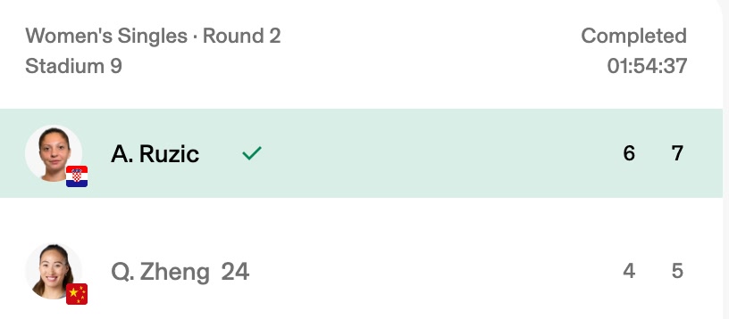 第二盘,鲁季奇越打越有信心,底线进攻也更敢于主动变线,这也与郑钦文未能给对手施加足够压力有关。鲁季奇第6局趁着郑钦文失误增多,在这一盘先破发。在局分2比5落后情况下,郑钦文反而打得更果断了,她连拿8分后,扳回两局。第10局,郑钦文再次保发成功,5比5。第12局,郑钦文化解对手两个赛点,但还是丢掉这一局,最终输掉这场比赛。