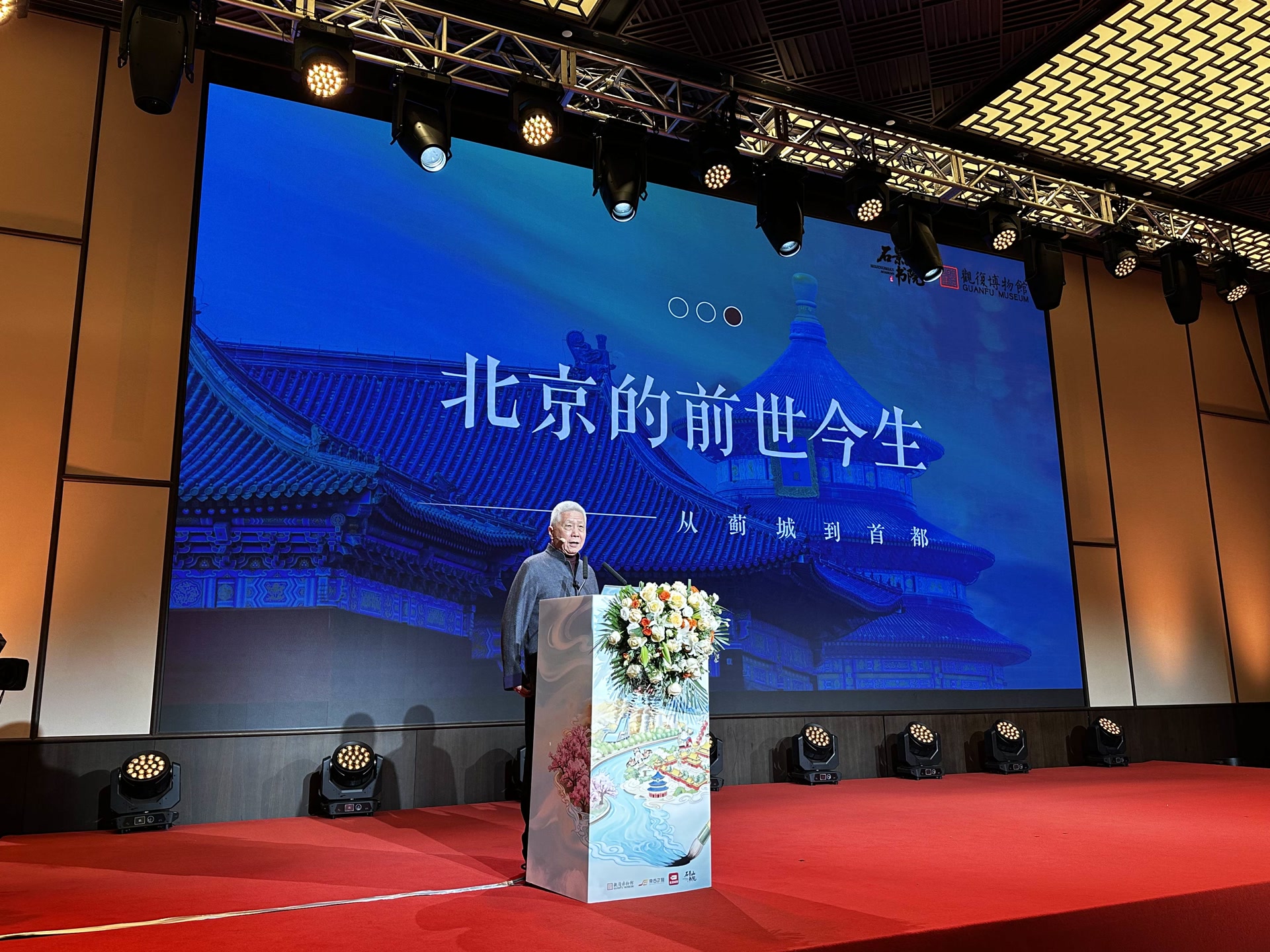 当天,观复博物馆创办人、著名文化学者马未都为观众带来了首场讲座。首讲以《北京的前世今生——从蓟城到首都》为主题,从房山琉璃河的西周燕都遗址,大葆台汉墓的“黄肠题凑”考古发现、华芳墓的文物考据,到隋、唐幽州城的历史沿革,再到辽金时期定都之始,直至元大都、明清北京城、新中国的建设,铺展开一幅恢宏、壮丽的历史画卷与城市发展图景。