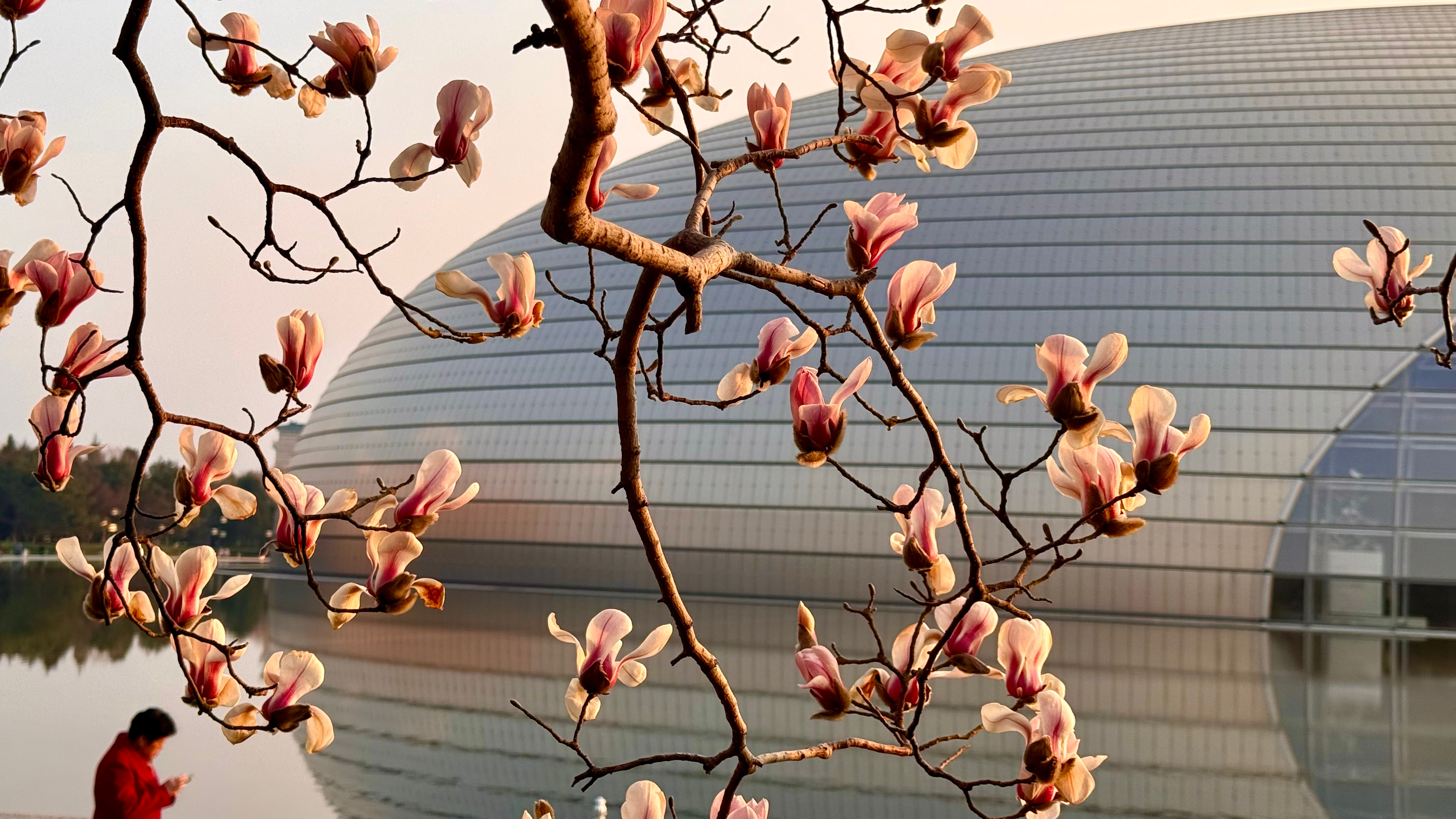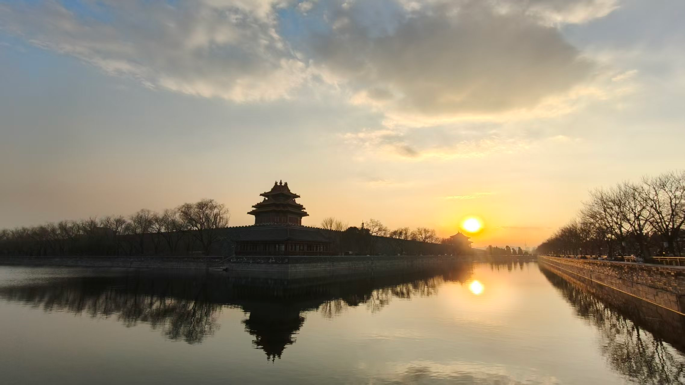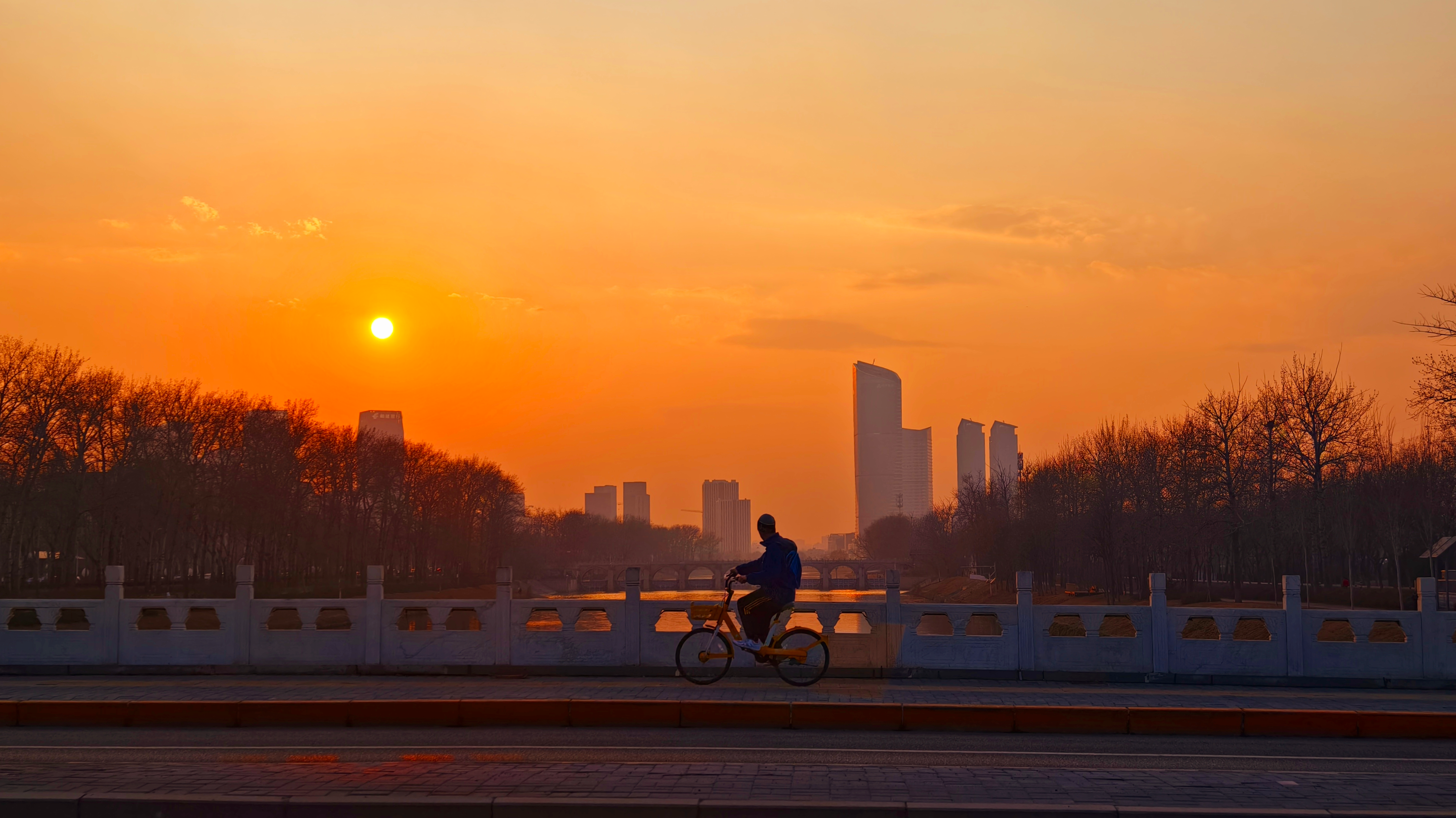 3月8日黄昏,夕阳将北京的天空染成一片醉人的橘色。随着夕阳缓缓下沉,余晖洒在大地上,仿佛给万物都披上一层梦幻纱衣。