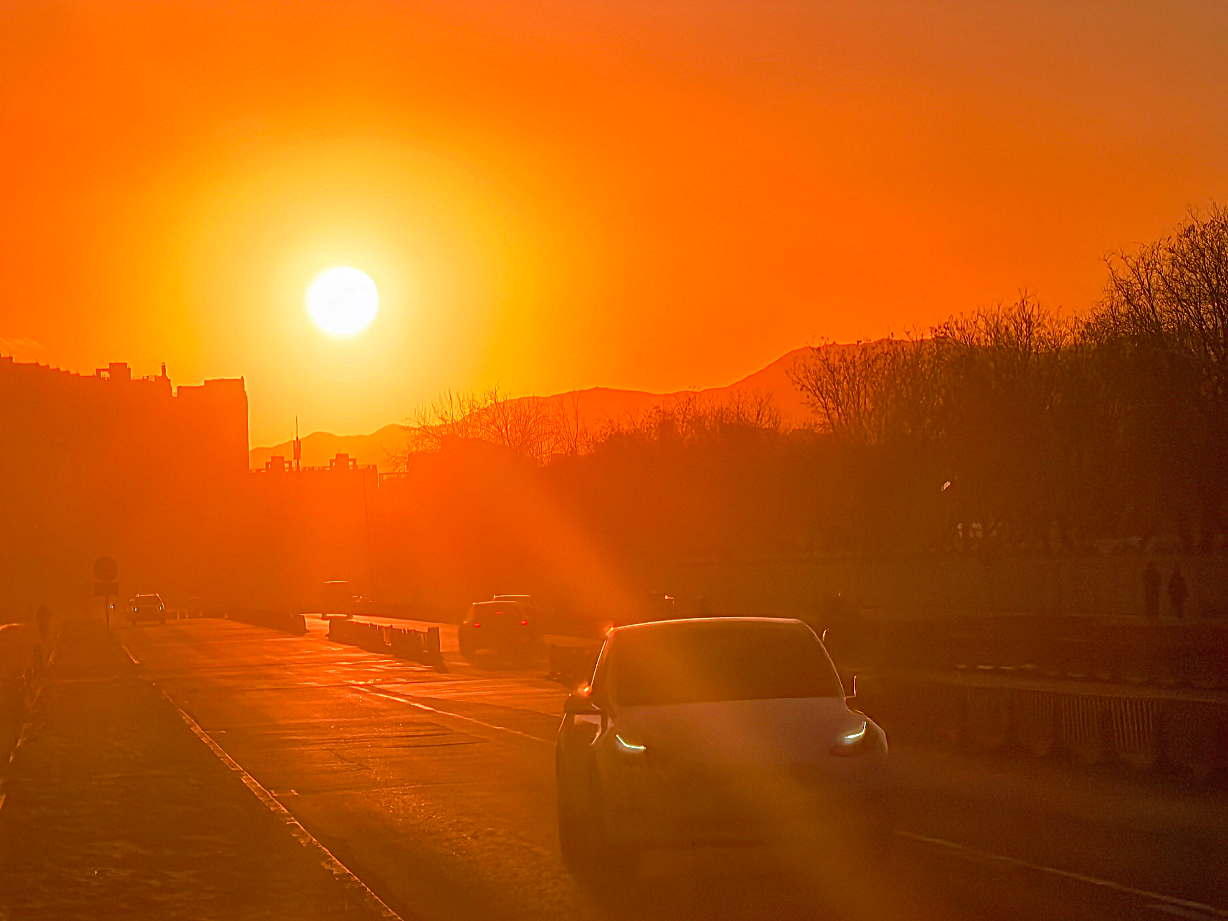 黄昏时分,北京橘色夕阳上线,美景醉人