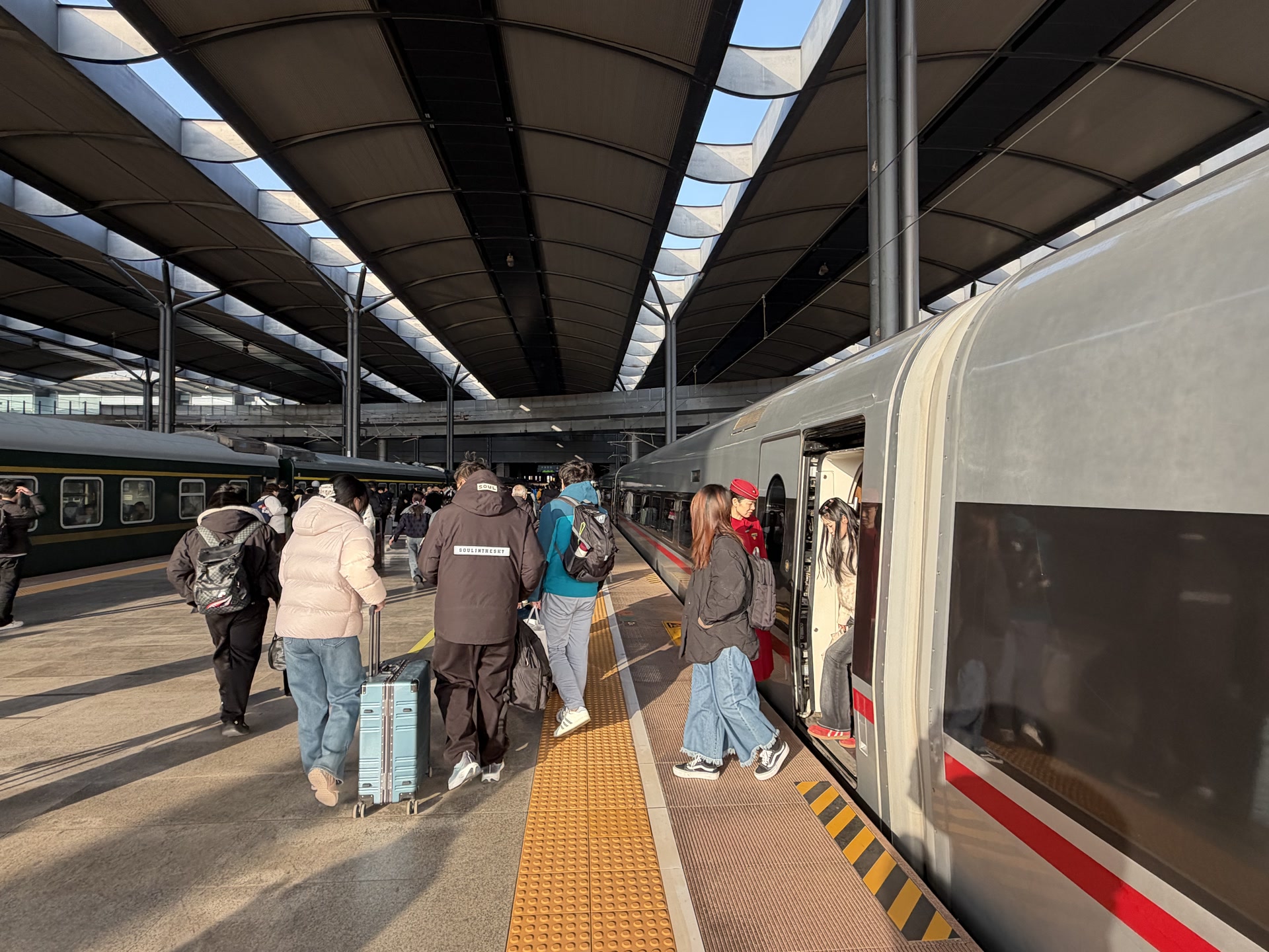 大二学生孙思涵打算去天津找朋友转一转,感受天津的市井氛围。“坐这趟车,8点半就能到天津西,再坐一站地铁逛逛西北角早市,吃个煎饼果子或炸糕,时间正好。”小孙说。