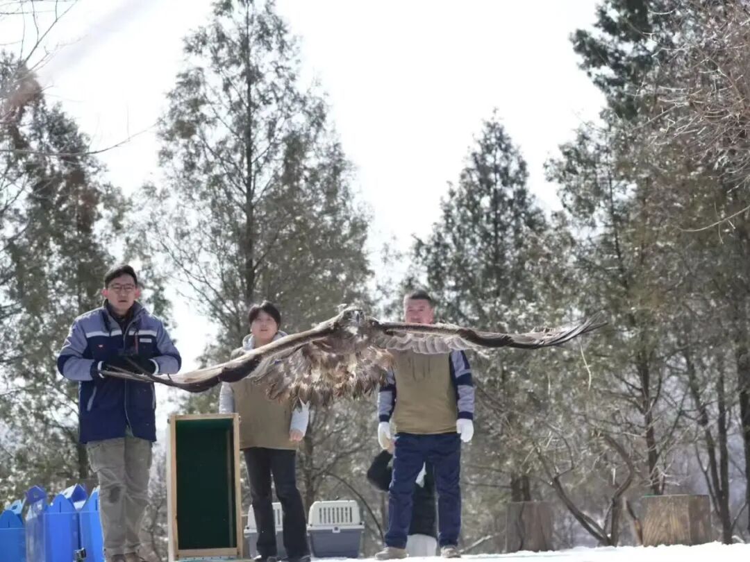 工作人员在完成野生动物救助与康复、确认其达到野外放归标准后,结合物种习性、种群分布及栖息地需求,综合选定生态环境优良、野生动植物资源丰富、人为干扰较少的八达岭林场作为放归地点。针对金雕、秃鹫等大型猛禽需要借助山地上升气流顺利起飞的特点,工作人员专门将其转运至高处放归点,提高放归成功率。