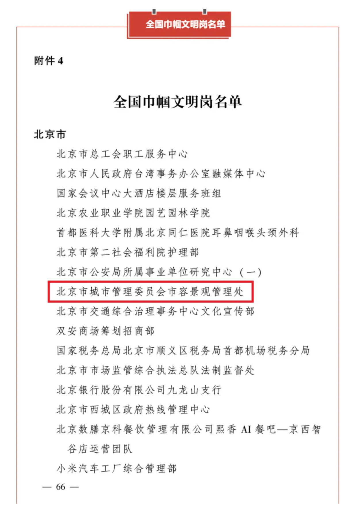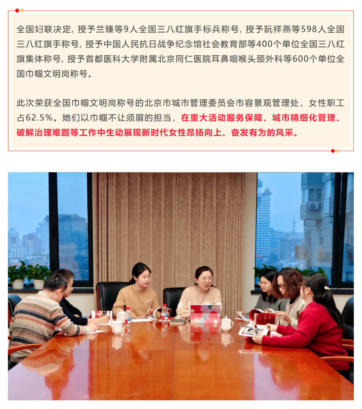 市城市管理委市容景观管理处荣获全国巾帼文明岗称号!
