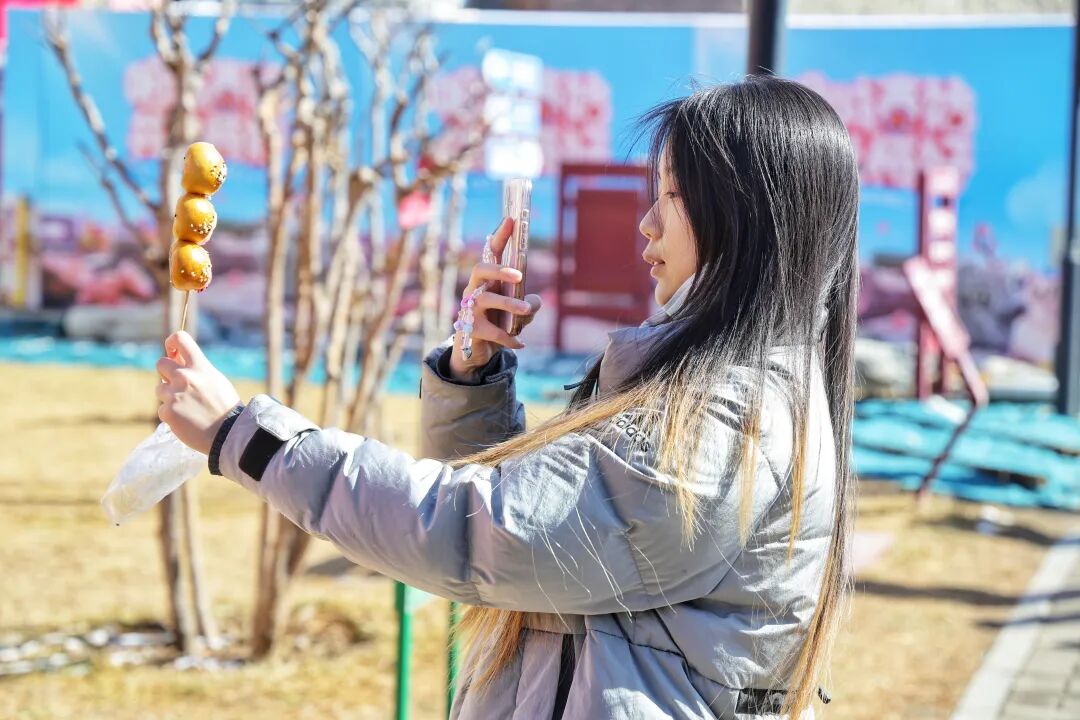公园东侧城墙脚下的“城意梅美市集”,汇聚首旅集团旗下众多知名品牌,东来顺的羊肉串香气四溢,顺时茶饮清甜爽口,北京野生动物园的小熊猫、卡皮巴拉文创周边更是一度抢手。市集处处融入梅花元素,马克西姆餐厅推出的“踏雪寻梅面包”“梅花抱抱卷”“红梅泡芙”成为爆款,东来顺的梅花造型糕点、长富宫饭店的梅花形状蛋糕,也深受市民游客的喜爱。“来赏梅不仅能看美景,还能品尝各式特色美食,太惬意了。”带着孩子逛市集的市民张先生笑着说道。