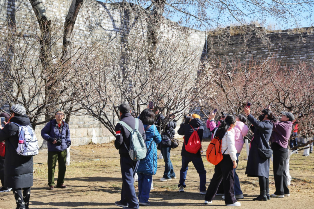 北京明城墙遗址公园负责人介绍,为方便市民游客近距离观赏梅花,园内4条赏梅栈道同步开放,让大家能够置身梅林之中,沉浸式感受梅香萦绕、暗香盈袖的美好体验。