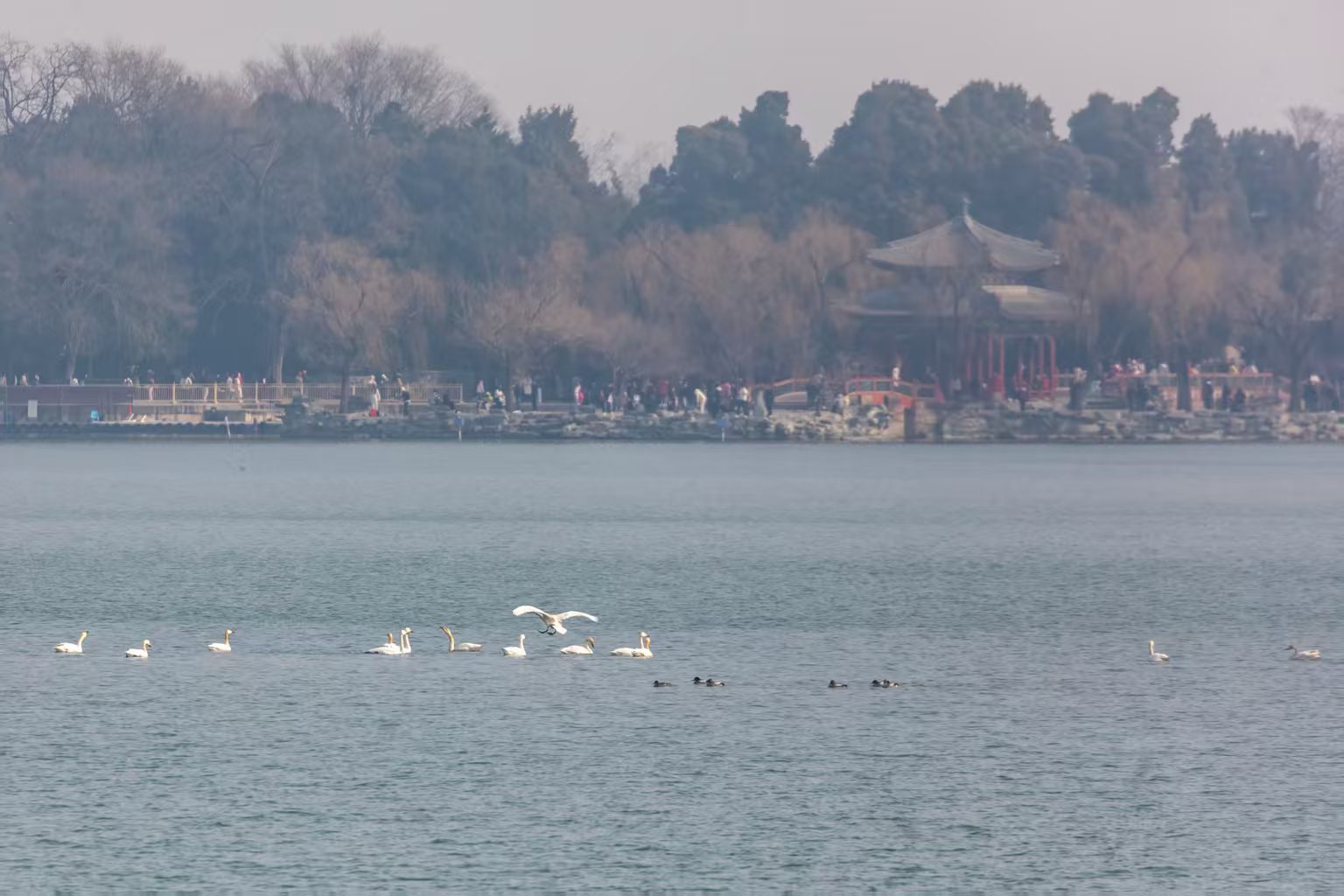 候鸟北归 昆明湖化身“天鹅驿站”