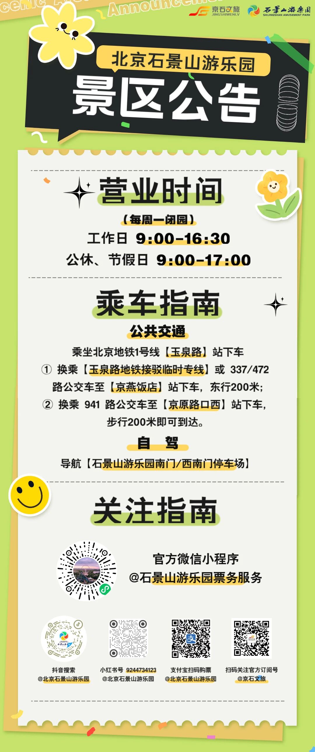 乐园已备好满满美好,期待和你在石景山游乐园相遇,关注小园子,解锁日常逛园的小欢喜~