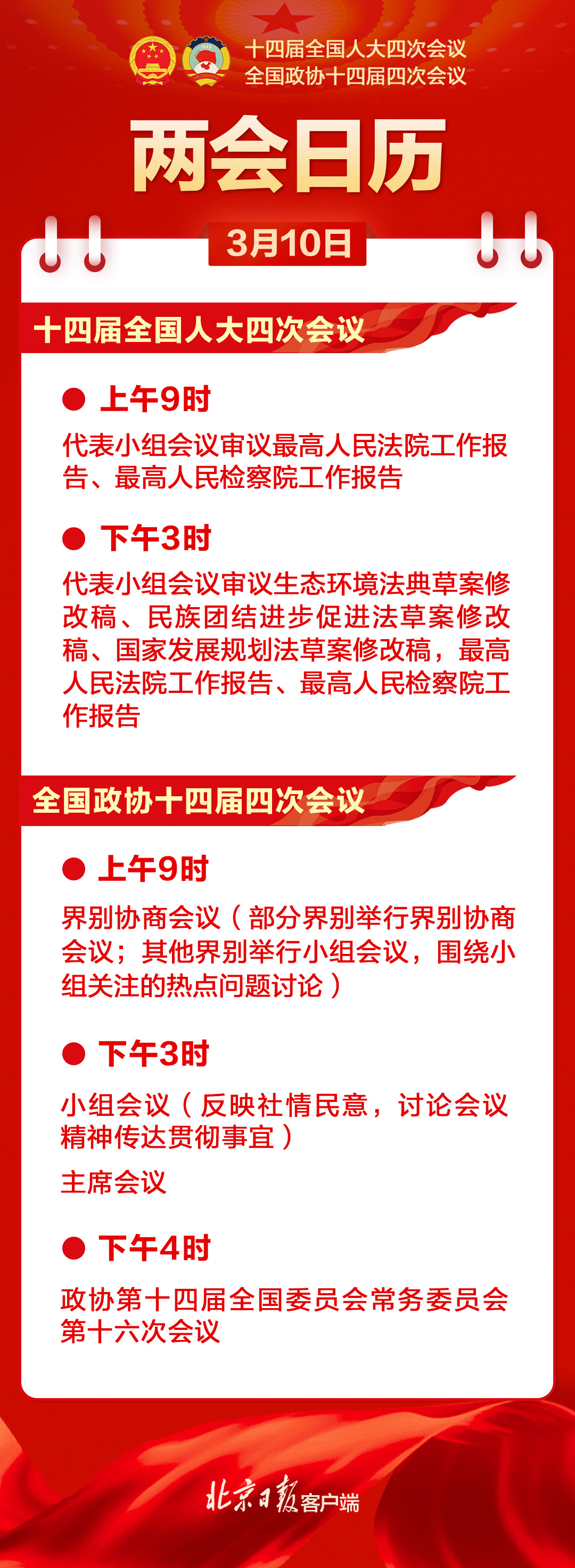 两会日历|人代会审议“两高”报告等,政协举行界别协商会议和小组会议