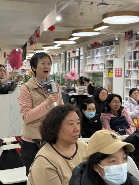 随后,又有几位读者踊跃举手诵读,或婉约、或深情、或激昂,每一段诵读都饱含对这位伟大女性的敬意。现场气氛活跃而温馨,诗句在书店的空气中流淌,仿佛将那个时代的才情与风骨重新唤回人间。