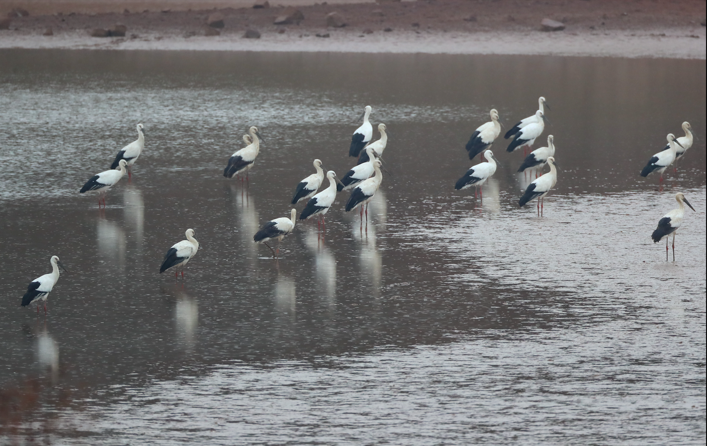 东方白鹳的数量极少,最新数据显示,全球也只有9000多只。此前,它们也曾造访过官厅水库,最多的一次14只,其余均为个体。
