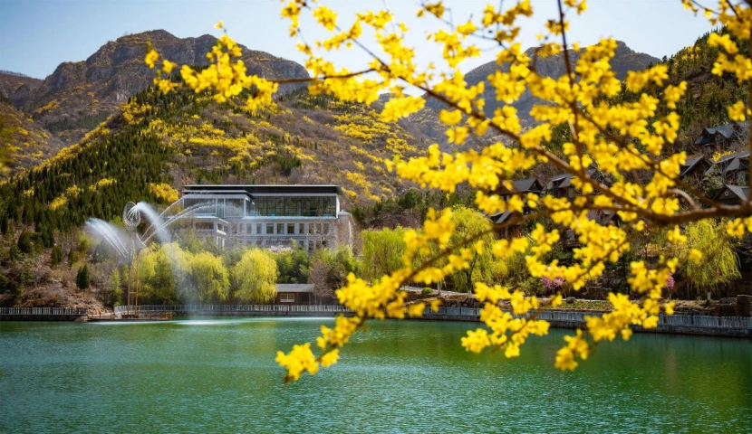 潭溪山9平方公里山野间,生命力蓄势待发。溪畔崖边,迎春垂枝吐金,细碎花瓣缀满枝条。