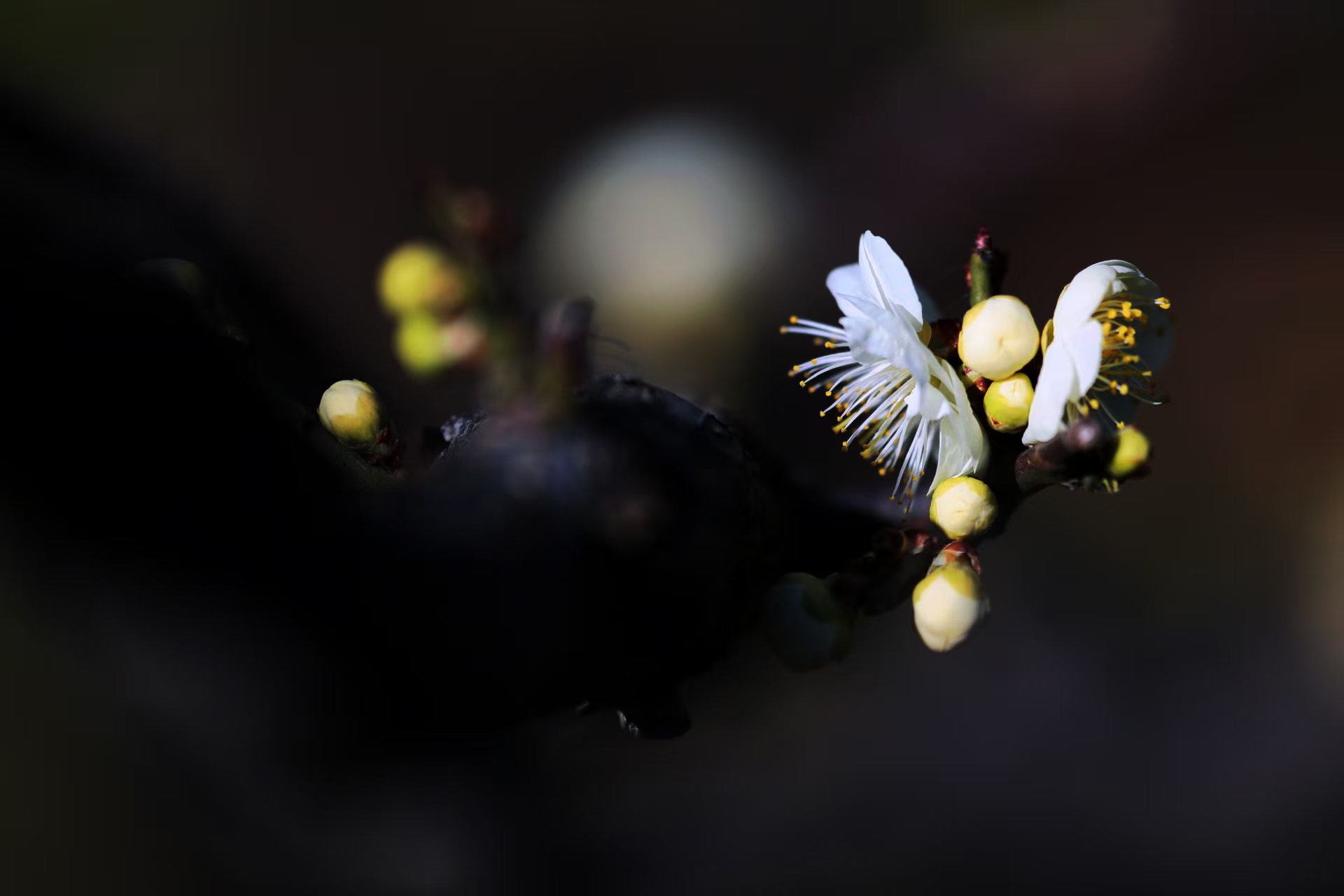 梅花迎着微凉春意傲然绽放,清雅花色搭配淡淡幽香,勾勒出早春最灵动的景致。