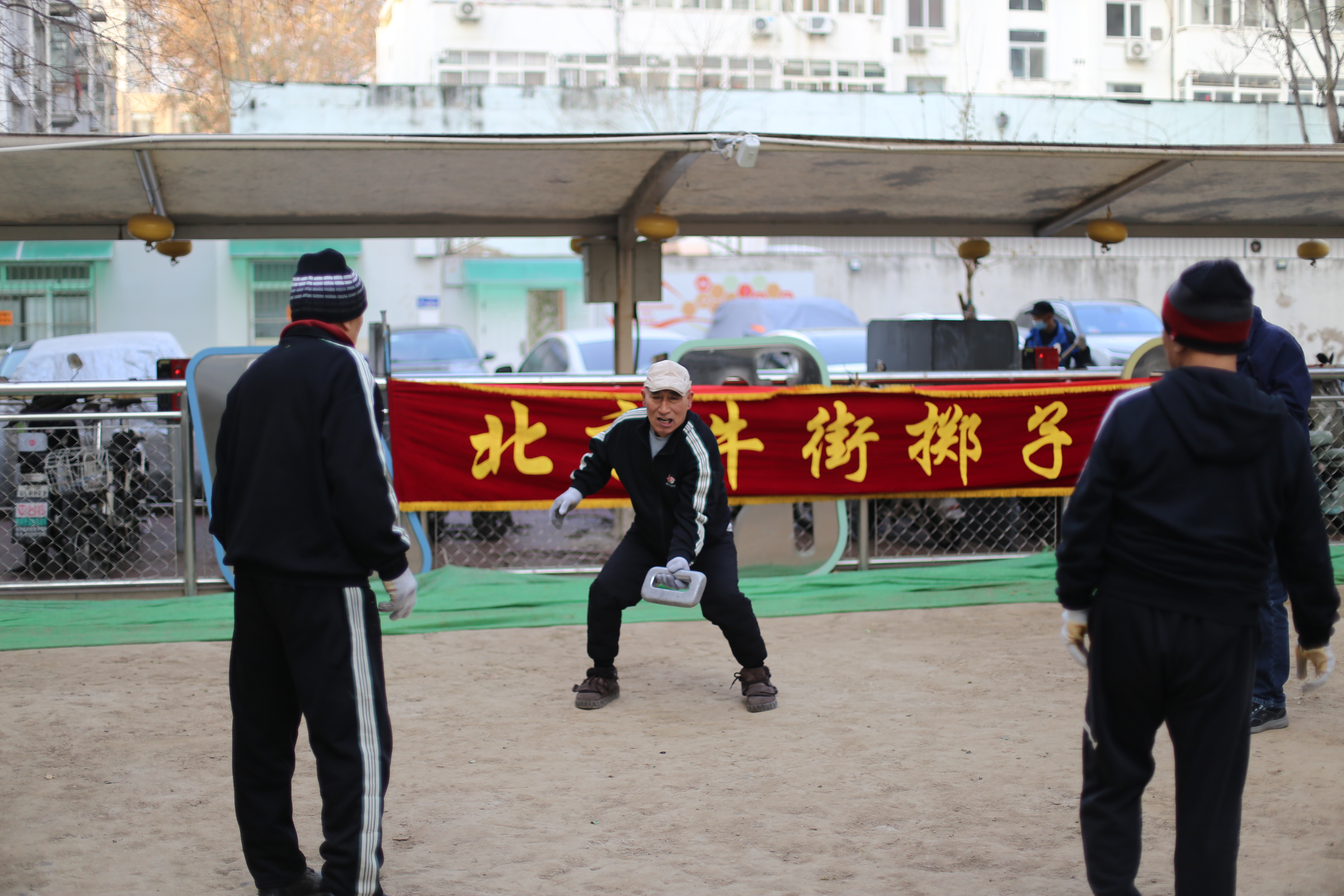 每天早上7点半,牛街西里一区的社区小广场上,总能看见几个老哥们儿围成圈掷子。掷子也叫“扔石锁”,练法有撇高和扔荷叶,要求眼疾手快。怎么扔有讲究,怎么接更是得迅速判断,掷子的手柄在哪儿,眼要看得准,手要反应快,掷子翻滚下落的瞬间,手得准确地抓住手柄才算成功。
