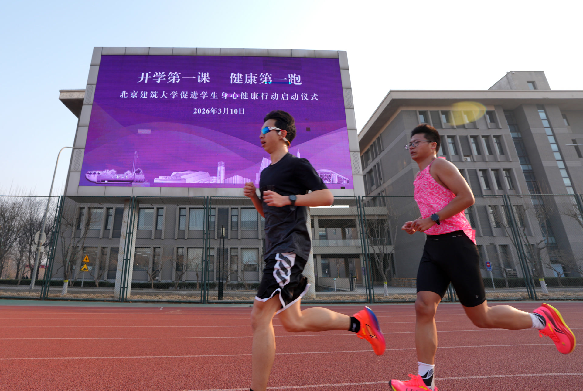 清脆的发令枪声响起,北建大党委书记王攀和2000余名师生一起出发,绕着操场跑起来。该校土木与交通工程学院研究生野堯一直跑在前列,他笑着说:“跑进新学期,这个创意很有趣,也很健康。我打算本学期加强锻炼,掌握更多科学的运动方法和技能。”