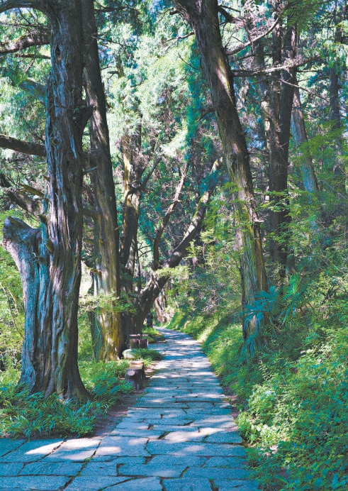 四川省剑阁县翠云廊古蜀道两旁的千年柏树郁郁葱葱。