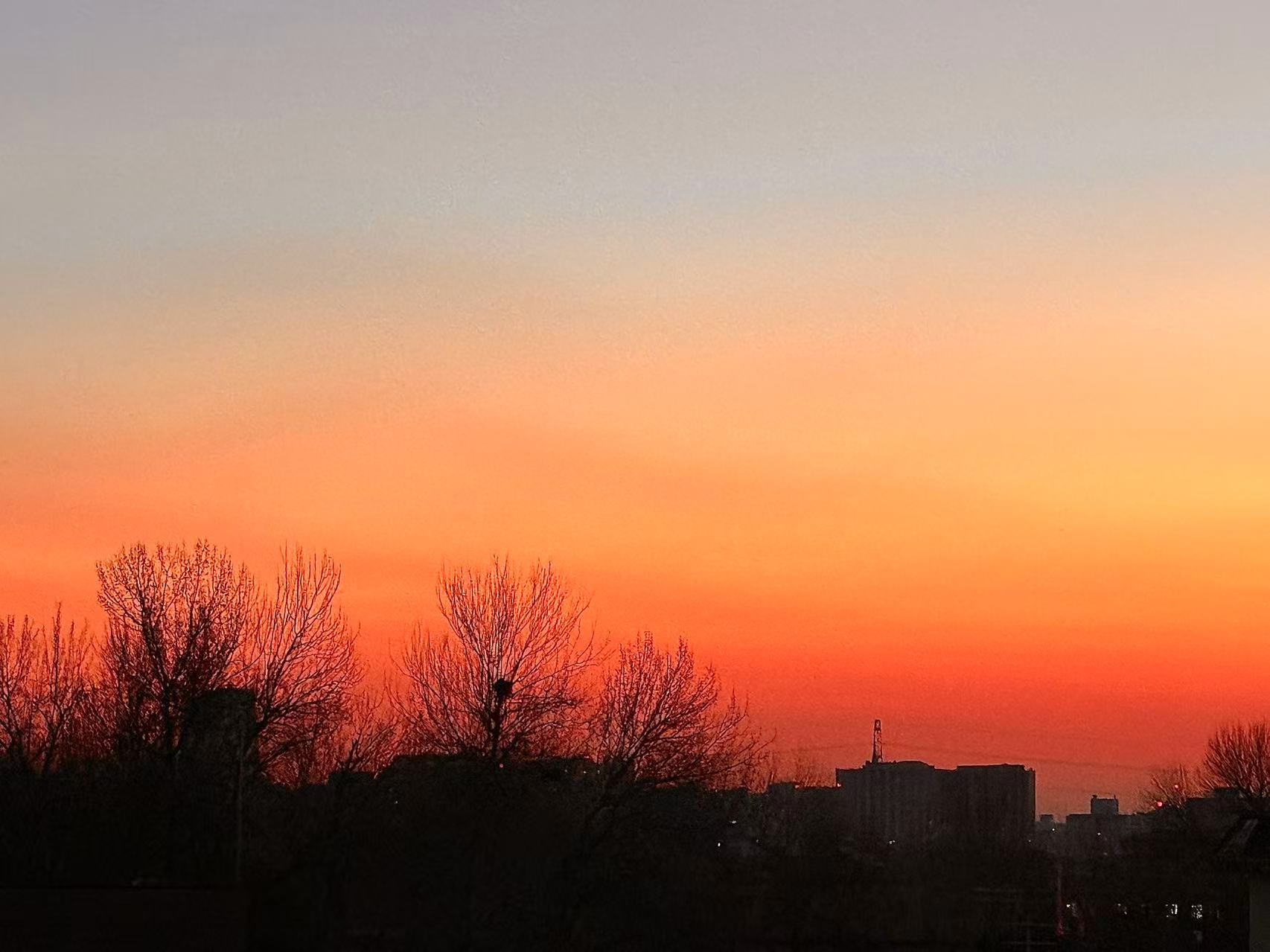 3月11日清晨,微风徐来,美丽的朝霞与一轮红日悄然出现在京城天边,为早起出行的人们带来了一个又一个美好的景致。