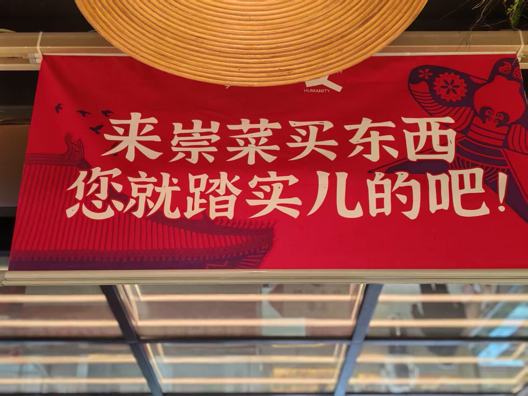 从东四往南3公里,一家重生的老北京菜市场,同样以标识上跳动的北京话闻名。
