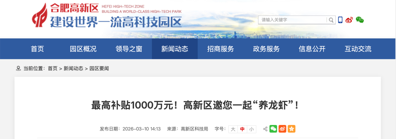 近日,合肥市高新区发布《合肥高新区打造人工智能OPC创业生态示范区行动计划(征求意见稿)》(央广网发 图片来源合肥市高新区官网截图)