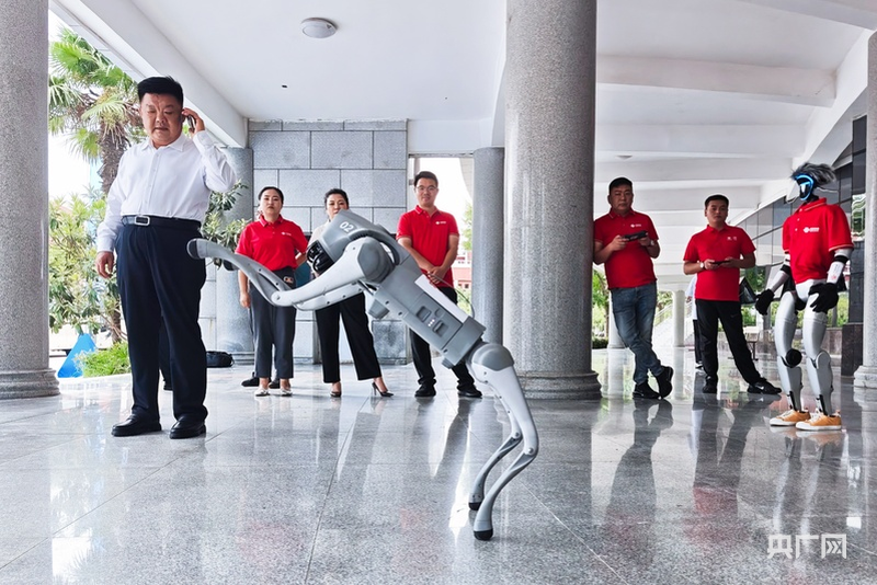 智能机器狗频频在展会出现,完成高难度动作(央广网发 记者张羲轮摄)