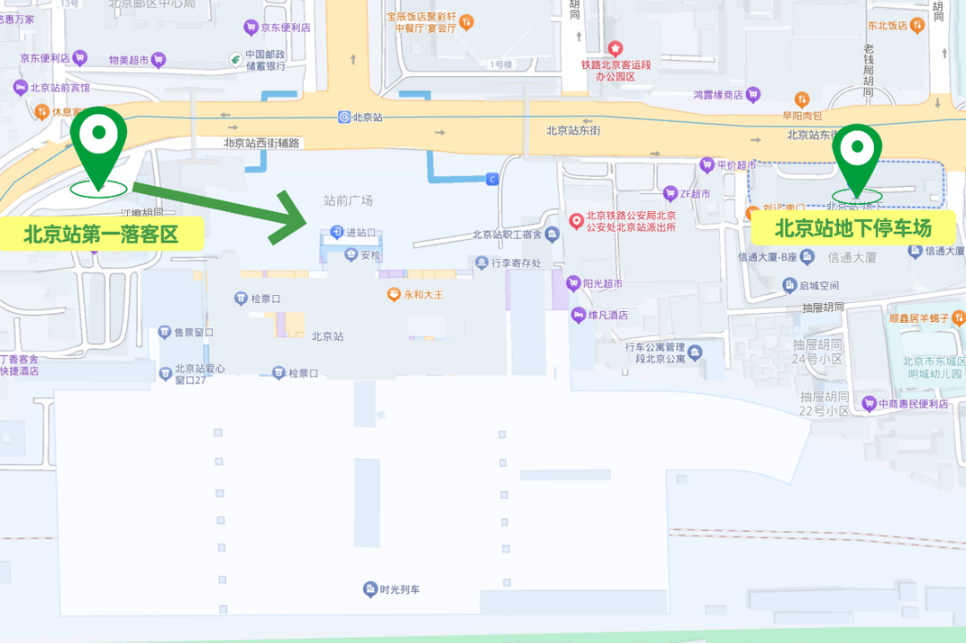 若您乘坐网约车,可搜索“北京站第一落客区”,这里与北京站进、出站口位于马路同一侧,直行进站更便利。