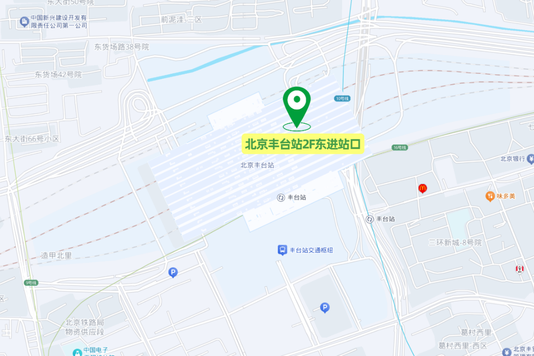 去往北京丰台站乘车的小伙伴,可以搜索“北京丰台站2F东进站口”,私家车、网约车、出租车送站,均可在此停靠。