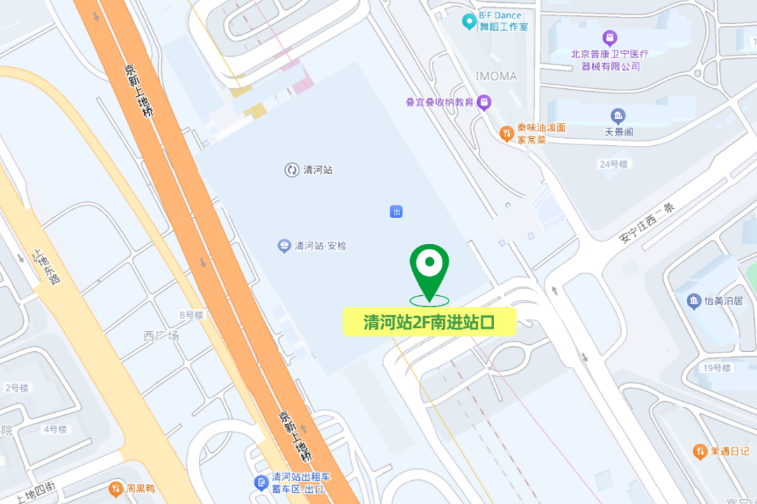 去往清河站乘车的小伙伴,可以搜索“清河站2F南进站口”,通过安检后即可直达二层候车大厅。