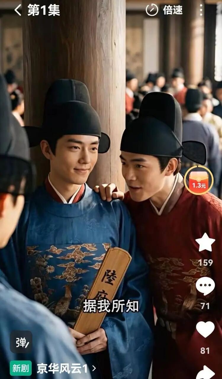 而3月10日曝光的肖战事件则更为复杂。除了《京华风云》,还有多部AI短剧使用肖战面部特征,剧集通过付费观看、广告分账变现,用户反馈AI形象与肖战高度重合。