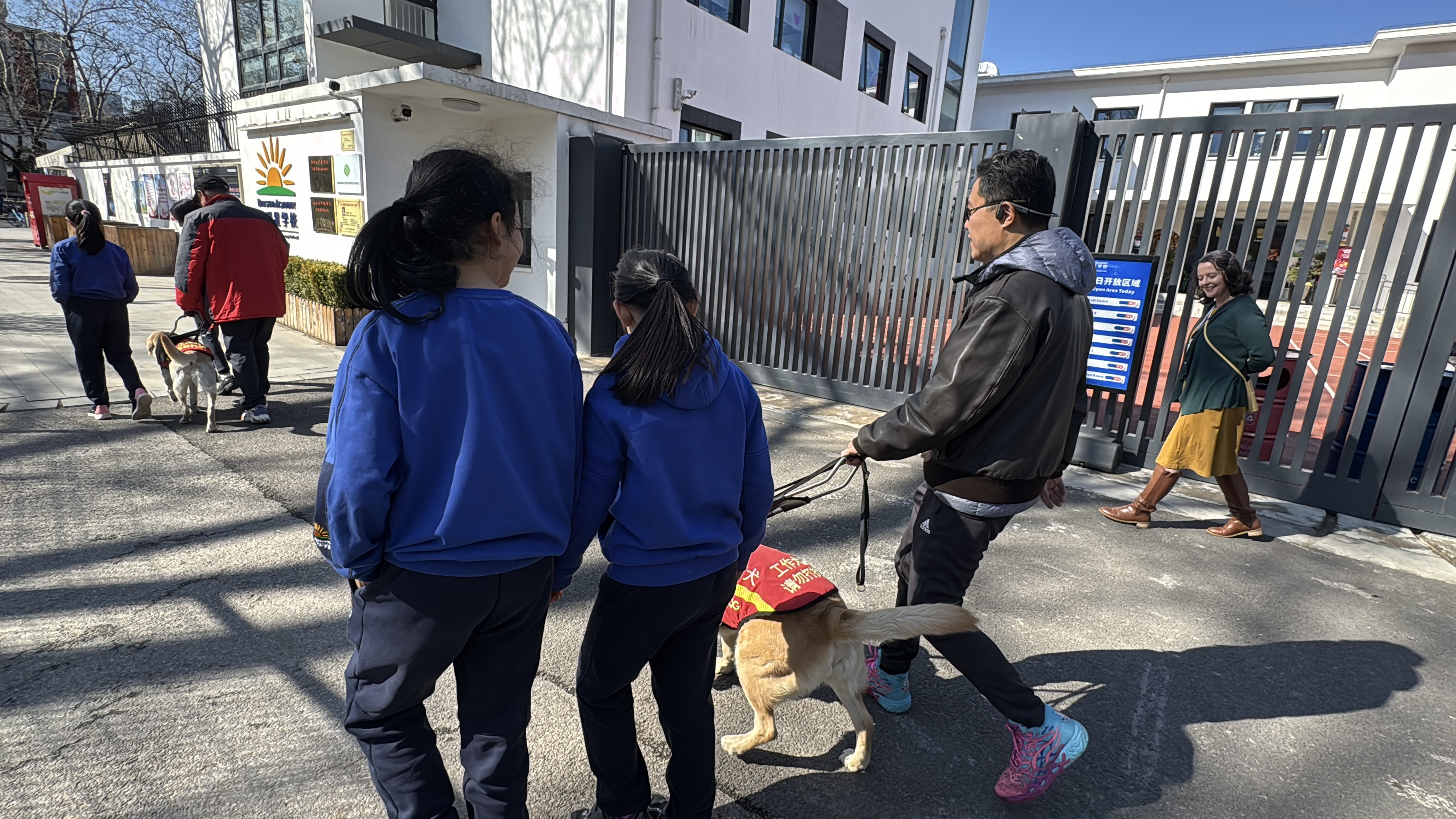 3月6日下午,市无障碍中心工作人员携导盲犬使用者,走进北京市朝阳区启明星学校三里屯校区五年级课堂,开展主题宣传活动。此次活动以“启明星之光,导盲犬之爱,让温暖照亮未来”为引领,通过学生采访、知识讲解、互动体验等形式,向青少年普及导盲犬知识,传播无障碍理念,助力同学们完成“动物对残障人士的帮助”毕业设计作品。