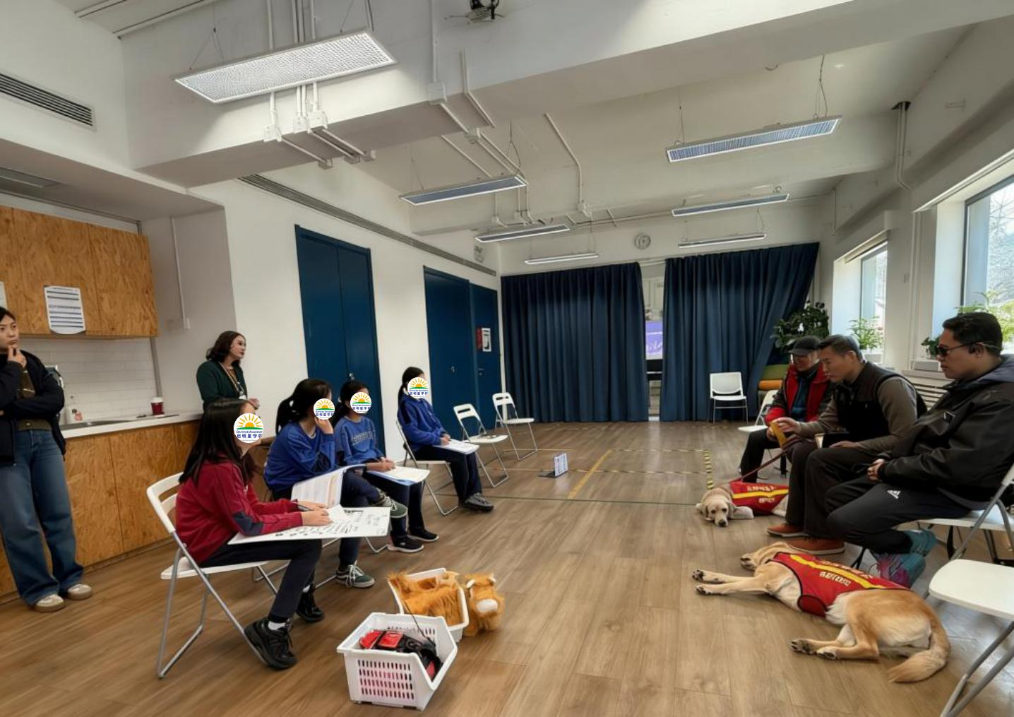 工作人员现场教学如何引领导盲犬使用者出行,同学们分组尝试,在实践中学习正确的引导方式。随后,导盲犬展示了工作状态——带领使用者绕过障碍、躲避行人。同学们的亲身体验让他们更直观地理解了导盲犬的专业与专注。青少年是社会的未来,在他们心中播下无障碍理念的种子,对于构建包容友善的社会环境具有长远意义。