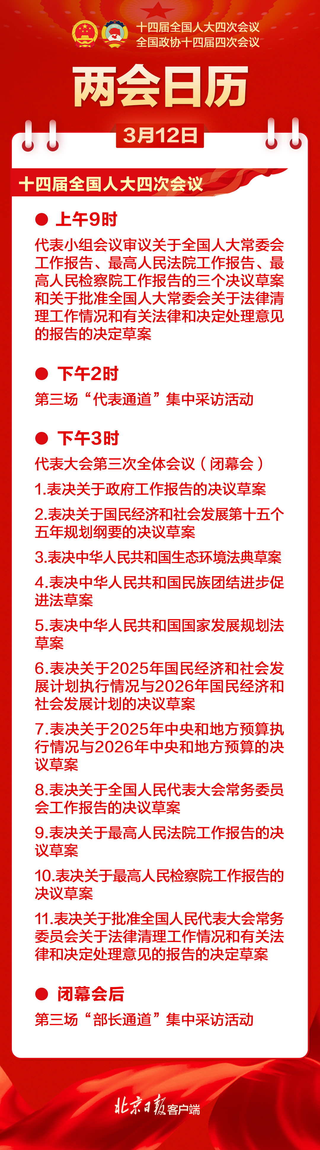 ▶ 两会日历|十四届全国人大四次会议今日闭幕