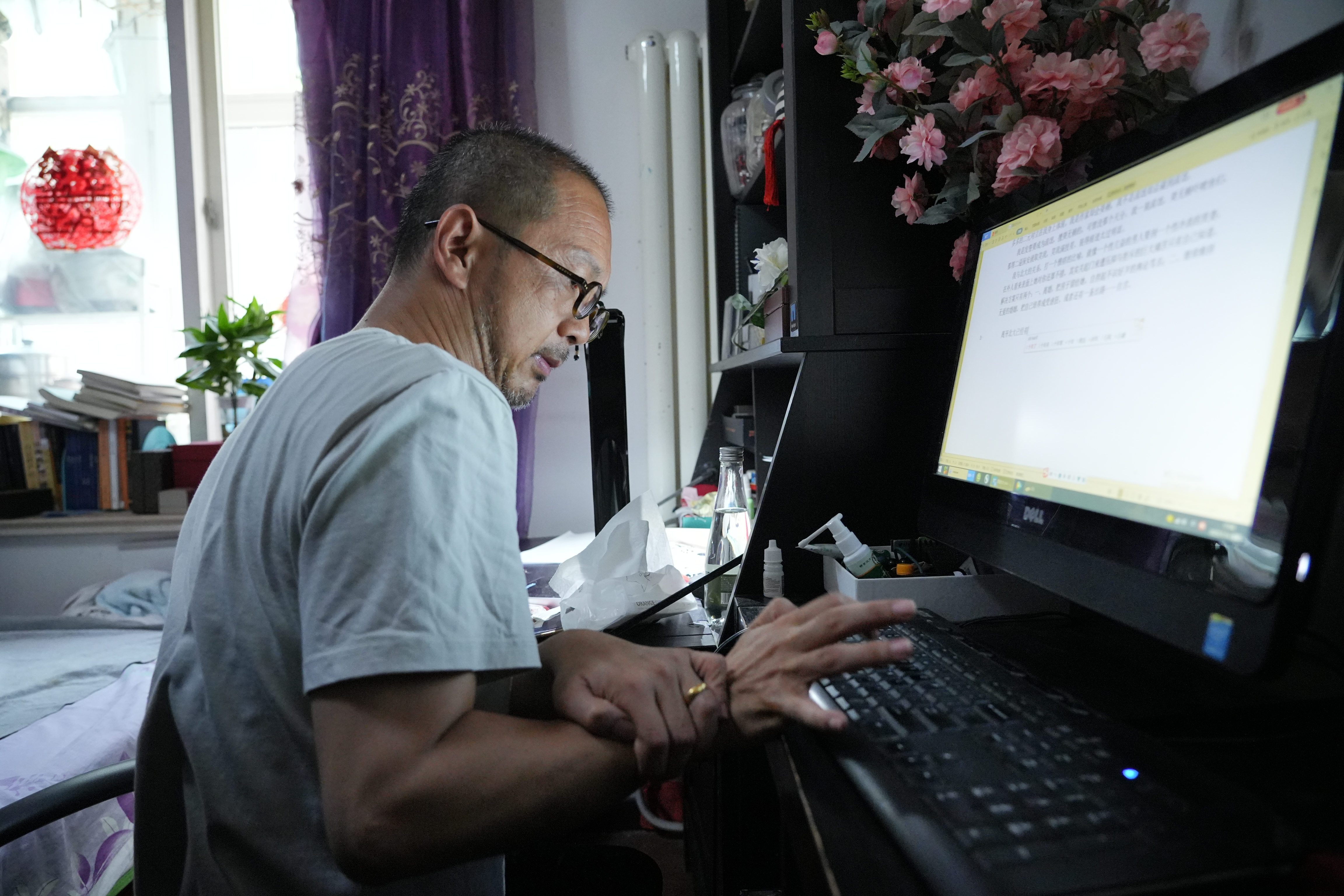 没有见过庄酷的人,很难将这位出了18本书的作家与先天性痉挛型脑瘫这个词联系在一起。今年50岁的庄酷说话含糊,走路颠簸易倒,双手颤抖蜷缩变形,身体虚弱,属于二级重残。但他却说:“身体受困,思想总要飞出去。”