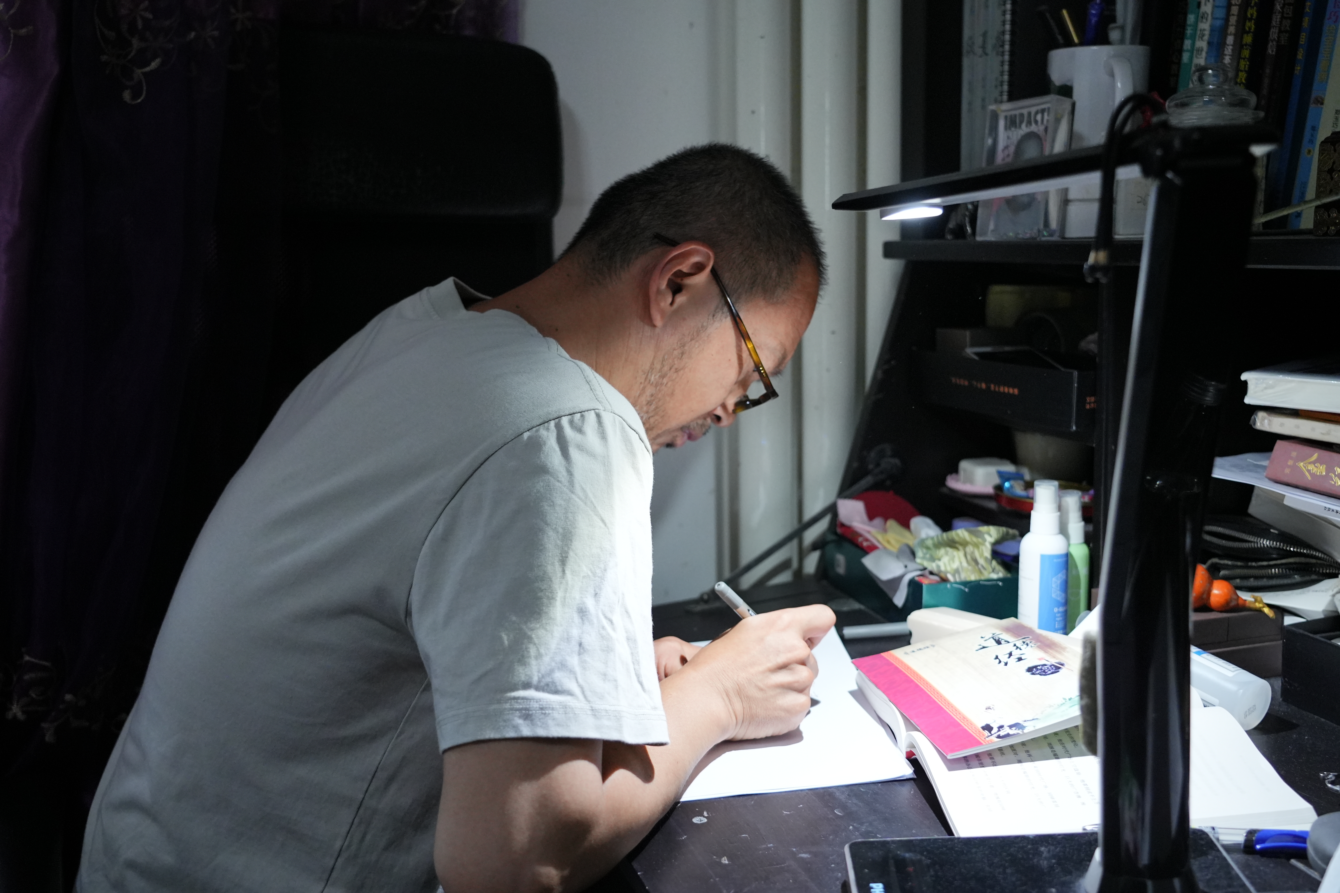 8岁开始上学,庄酷双手颤抖连简单的作业都写不完。“握笔要两只手一起使劲,左手扶在右胳膊上辅助右手。字不仅写得慢,而且大、乱,老师常认不出。”但庄酷偏要和自己“较劲”:别人1小时写完的作业,他熬到深夜也要完成;别人玩耍时,他在灯下练握笔,纸页上满是歪歪扭扭的文字。