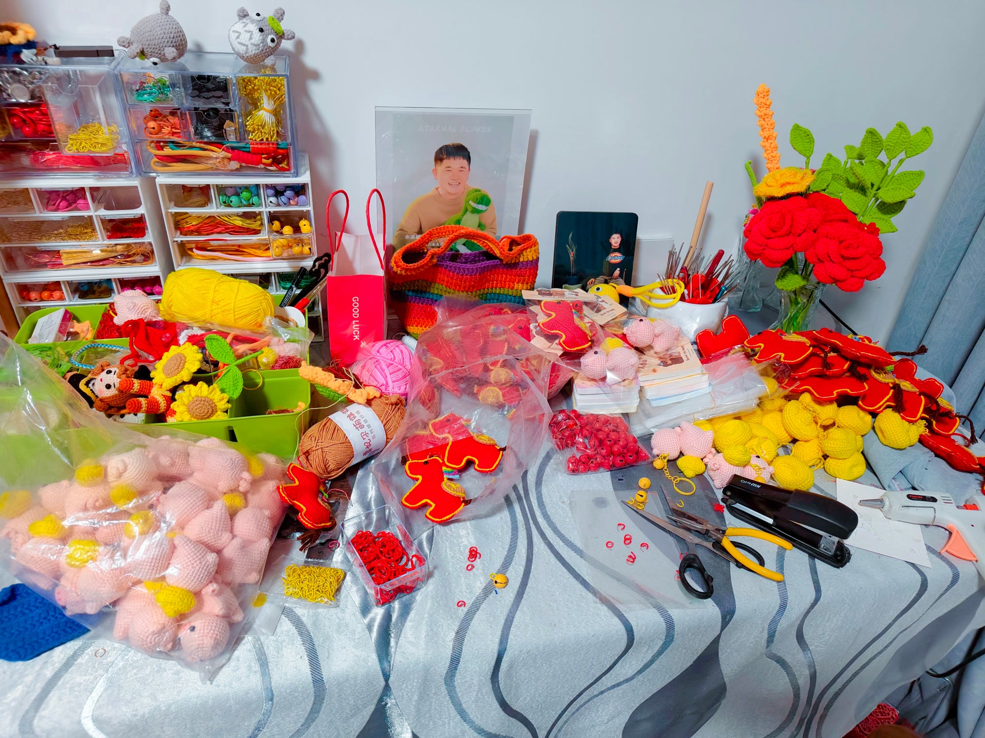 平静的日子,被一纸诊断书打破。2024年3月,小石头的父亲查出患有食管癌。消息传开后,村里不少人前来探望慰问,有的叮嘱几句,有的主动询问需不需要帮忙。小石头一一记在心里,也暗暗下定决心:要凭一己之力,撑起这个家。偶然间,小石头在网上看到有人售卖钩织玩偶,忽然想起小学劳动课上学过的钩织手艺,“这个我也会,是不是能试试?”