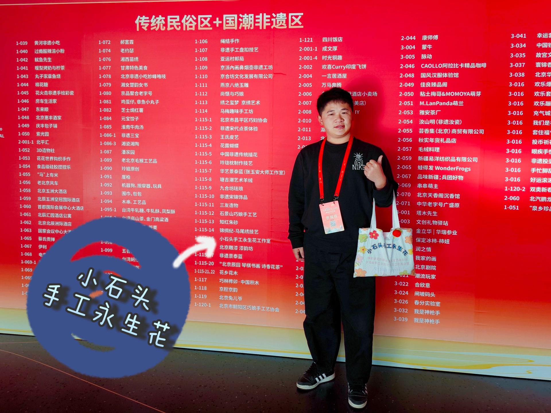最开始,小石头没有固定摊位,就在永宁大集上摆“野摊”。一次,清华大学乡村振兴工作团队的老师,在得知他的故事后,主动帮他对接资源。经延庆区妇联与永宁镇政府协调,小石头在永宁大集上有了固定的免费摊位。后来在很多人的帮助下,他创建了“小石头手工永生花工作室”。