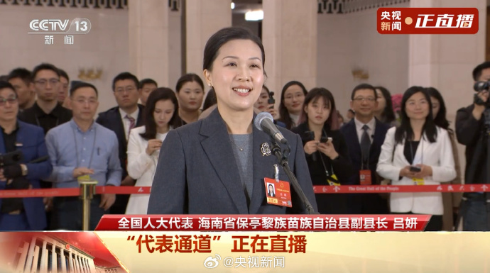 “能煲汤的五指毛桃,能做药的益智草,会上树的鸡,不回家的牛,会冲浪的鱼,五只脚的猪。”全国人大代表、海南省保亭黎族苗族自治县副县长吕妍,在第三场“代表通道”上分享了一位年轻人回老家后把祖屋改造成雨林民宿的故事。