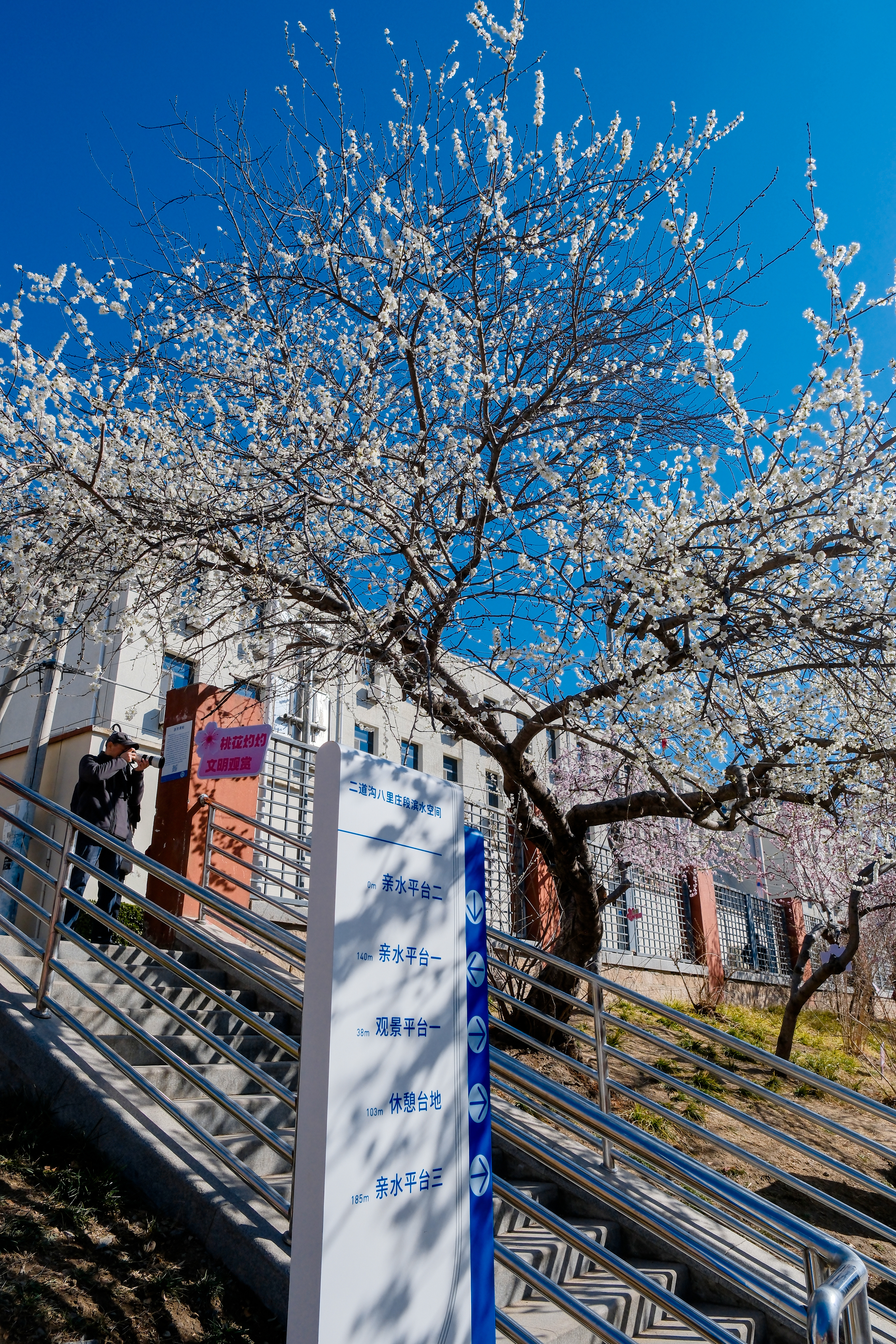 花好看,但赏花并不容易。二道沟两侧原本是陡峭的坡地,游客很难驻足。2024年,市河湖管理部门对二道沟八里庄段开展了治理,近400米长的滨水空间亮相,步道全线贯通,还设置了多个观景平台。这下子,二道沟更热闹了,直接火爆社交平台。