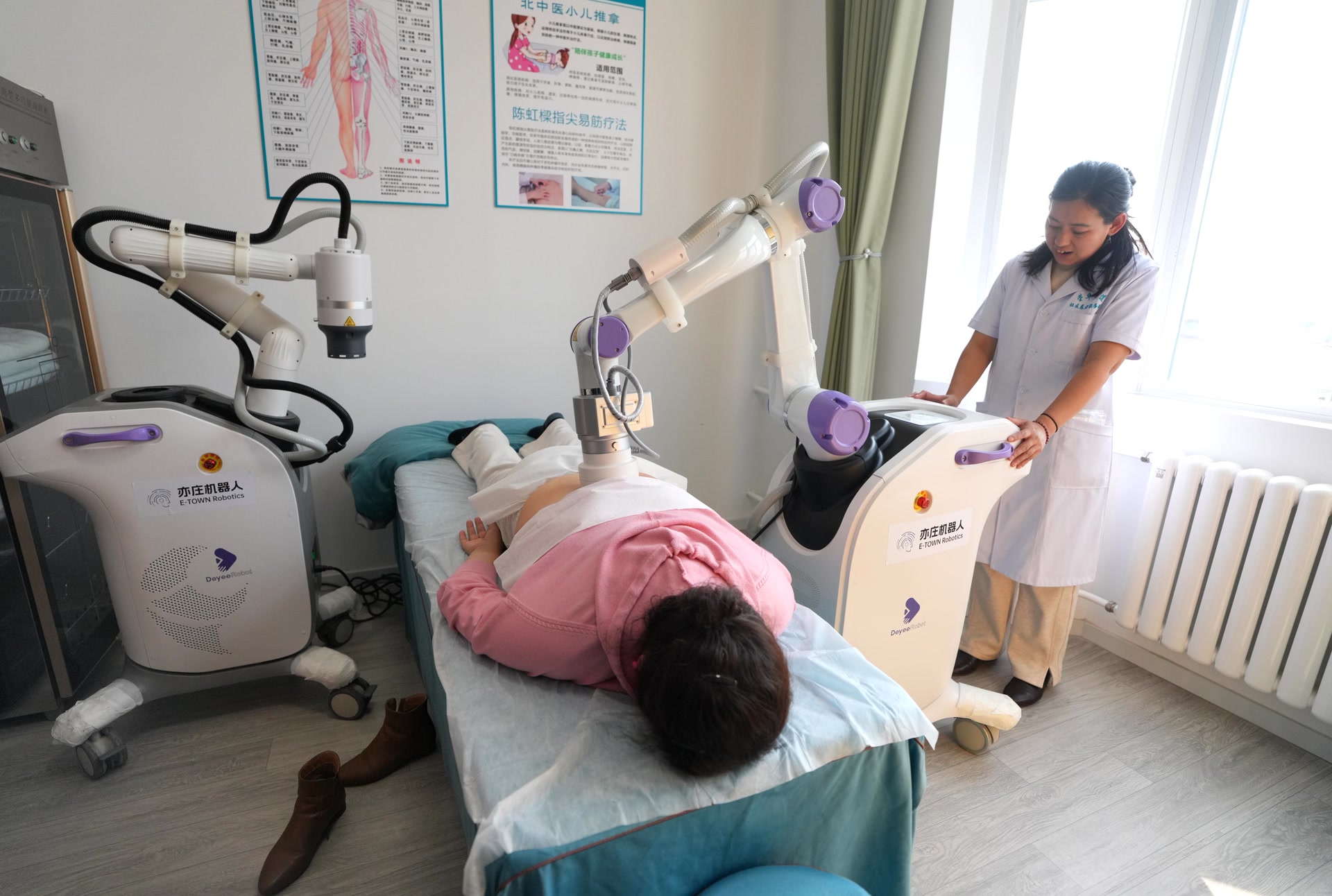 考虑到老年人的日常需求,康复理疗区可满足康复训练、健康检测等多种需求:按摩机器人提供多部位适配的舒适按摩,艾灸机器人智能定穴施灸、控温防烫,健康检测设备可快速完成多项指标检测。
