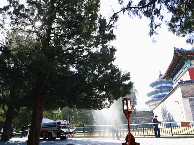 ▶ 天坛公园启动柏树花粉治理,高压清水喷淋1500多株柏树