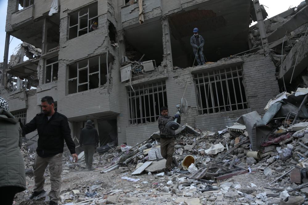美国和以色列对伊朗发动的军事打击12日进入第13天。新华社记者12日在德黑兰东部一处广场附近看到,多处建筑被美以袭击彻底摧毁。这里的居民只能在废墟中寻找可用的物品,搬离家园。