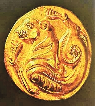 新疆托克逊阿拉沟古墓出土的战国到汉代虎纹圆金牌