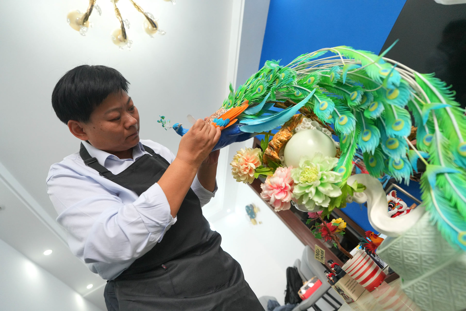 杨帆的面塑技艺源自四代家传,自曾外祖母起代代传承,其母亲为国家级非遗项目传承人。她大学主修雕塑,深耕面塑领域25年,将家传技艺与现代面塑融合,创新“食用+文创”非遗传承模式。其作品栩栩如生,屡获国内外大奖:2016年,面塑作品《福禄天下》斩获米兰世博会中国艺术展金奖;2022年,创新融合木工技法的面塑沙盘《虎娃迎冬奥》亮相冬奥会鸟巢场馆。