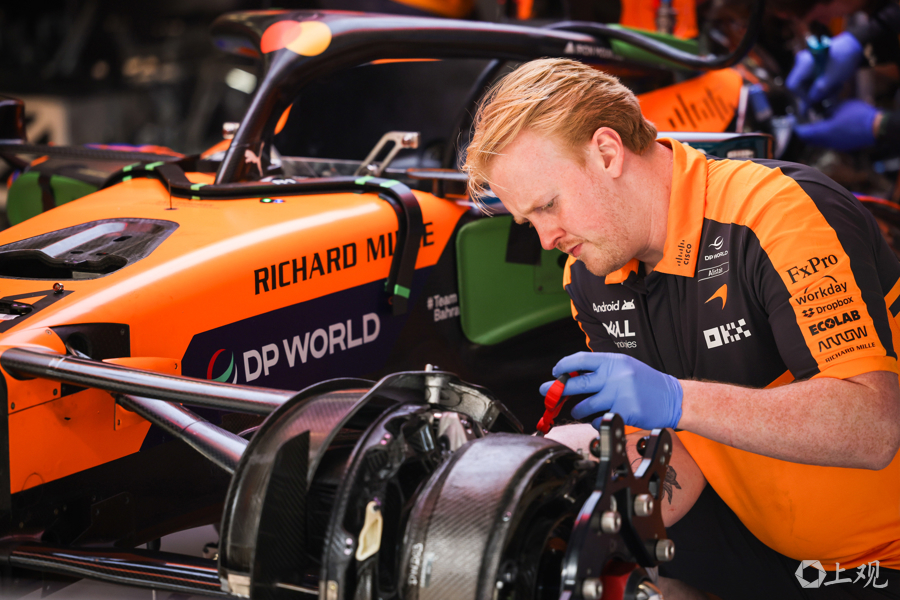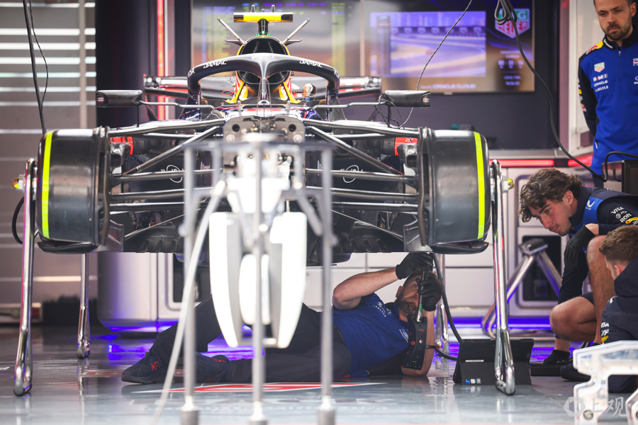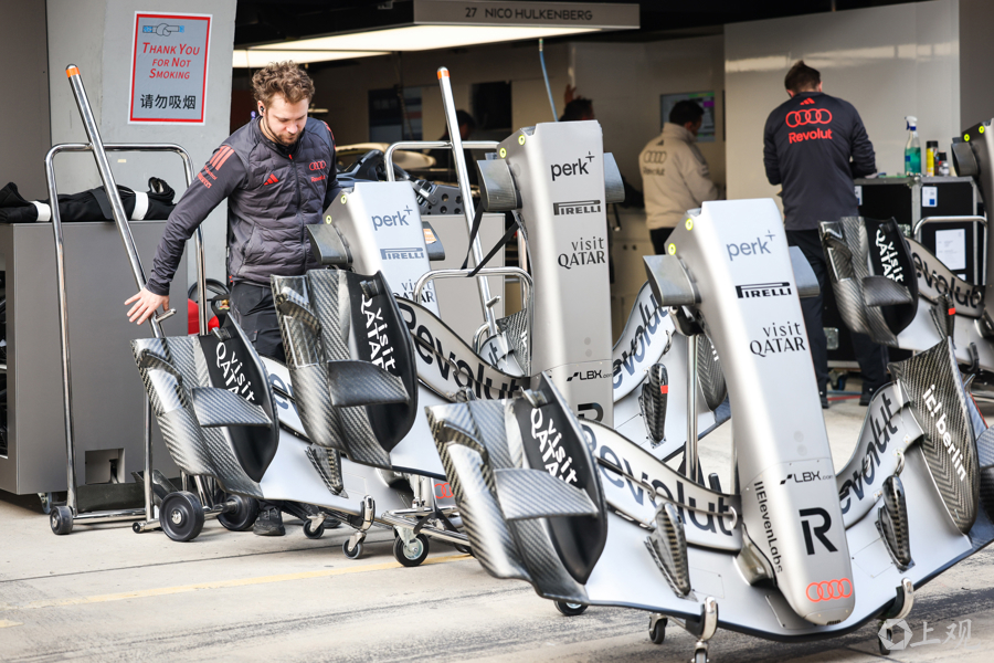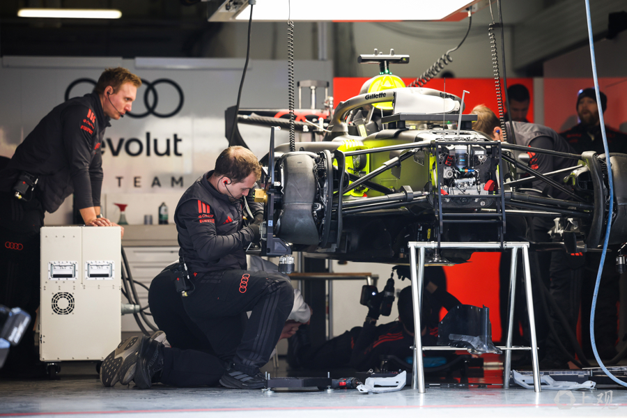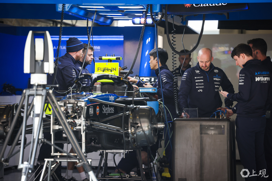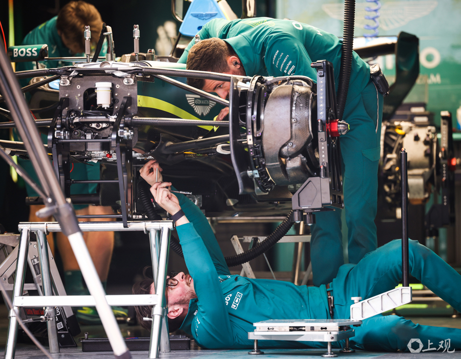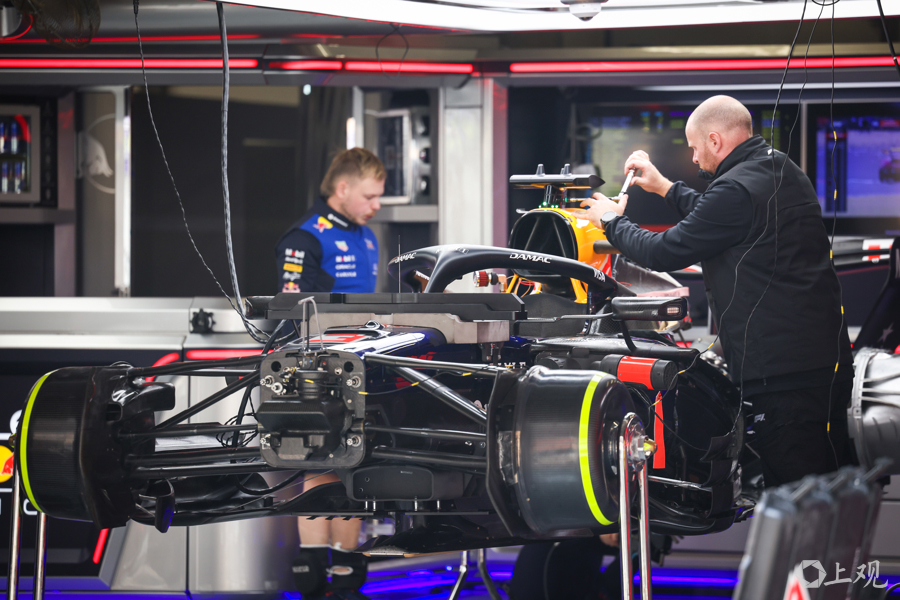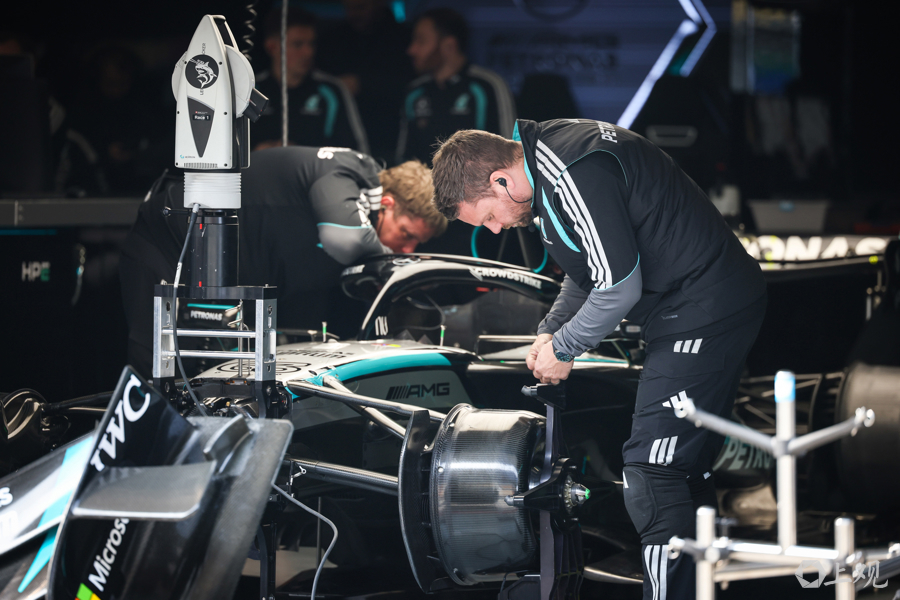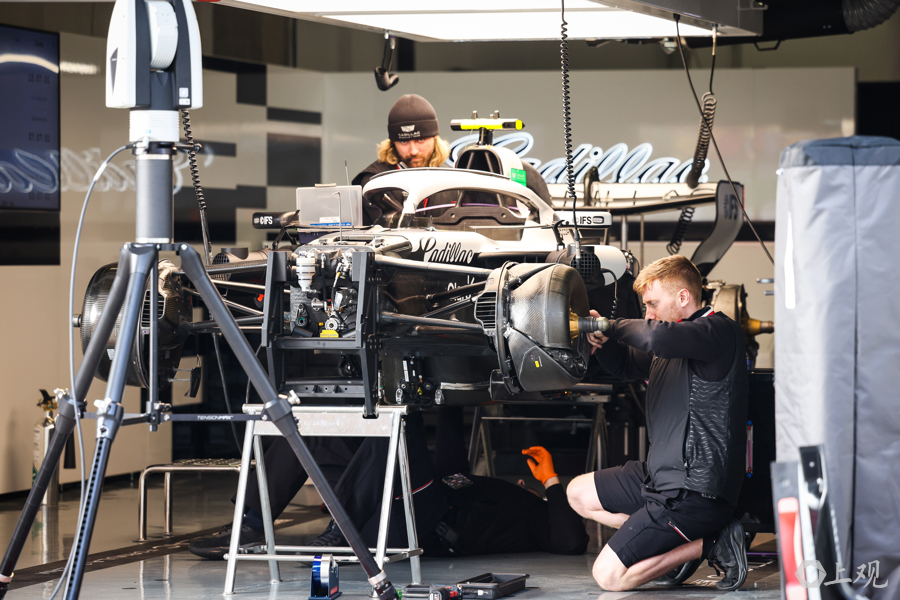3月12日,2026赛季世界一级方程式锦标赛(F1)中国大奖赛开赛前夕,各车队工作人员与工程师在上海国际赛车场P房(赛车维修站)内对赛车进行最后调试,全力投入赛前准备工作。
