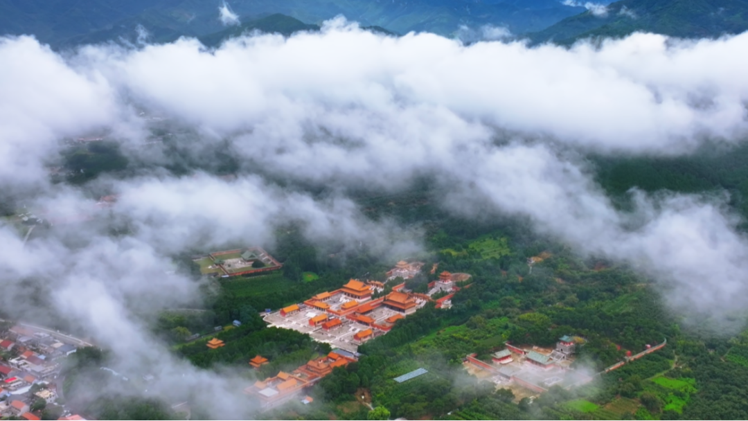 你是否见过,云海中的清东陵。那是一幅流动的画卷,青灰色的山峦如巨龙蜿蜒,金黄的殿顶如岛屿浮现,云雾翻涌其间。