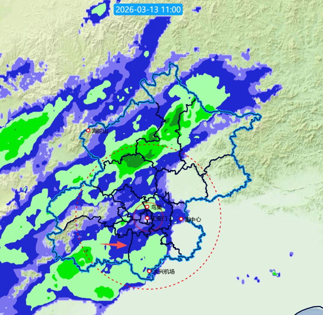 截至今天11时,全市平均降水量0.1毫米,最大降水量在门头沟江水河,3.5毫米。