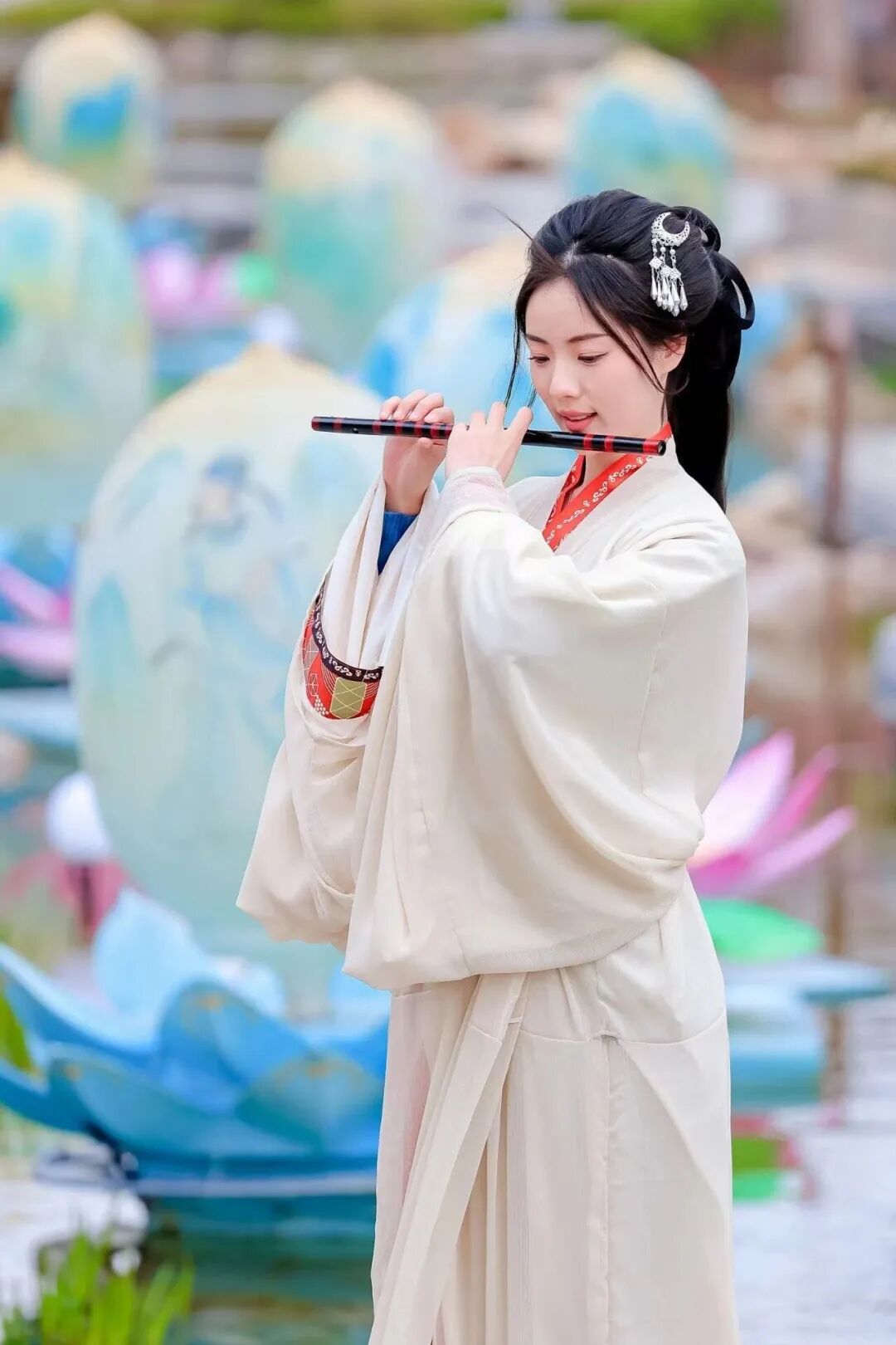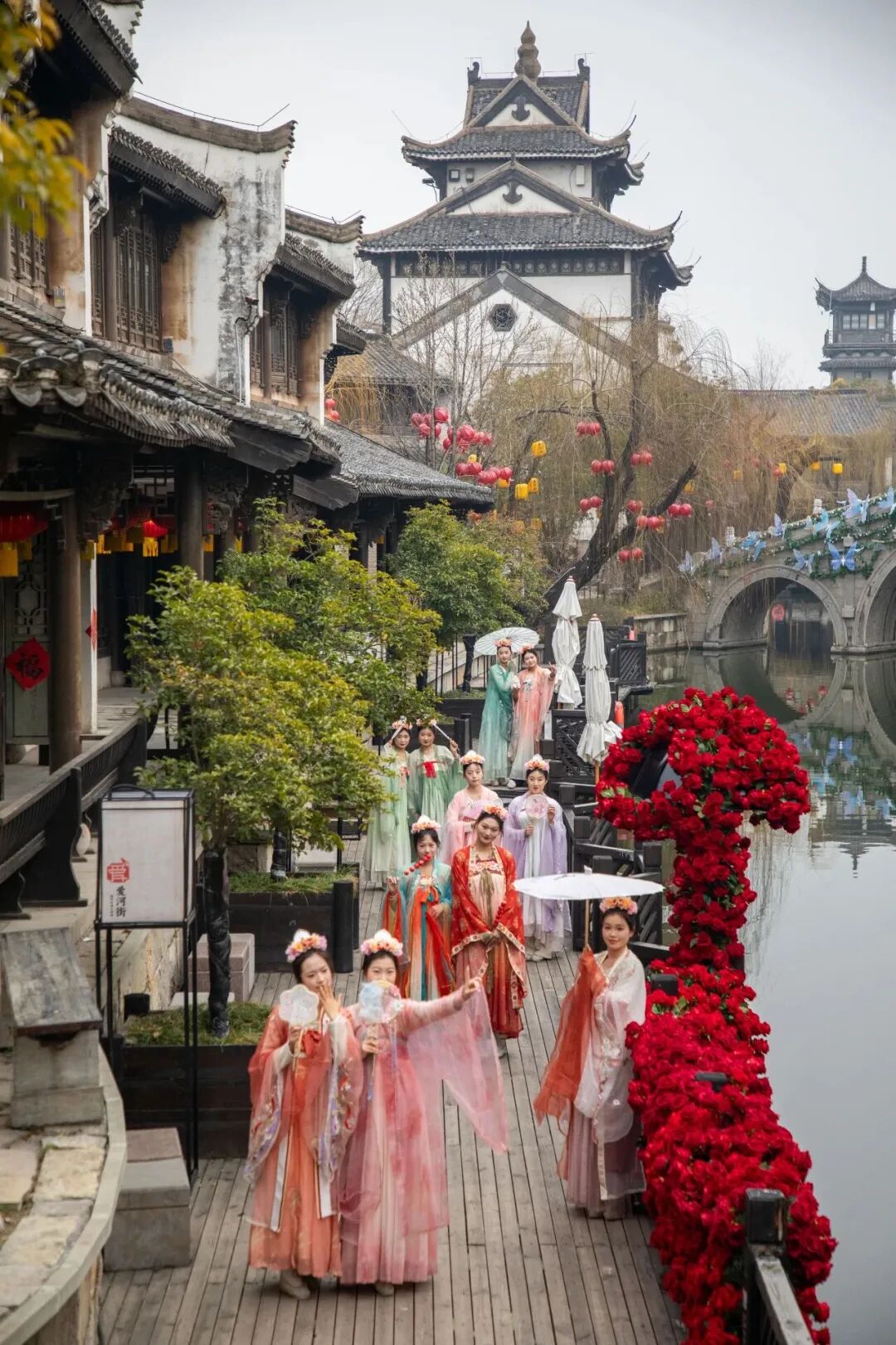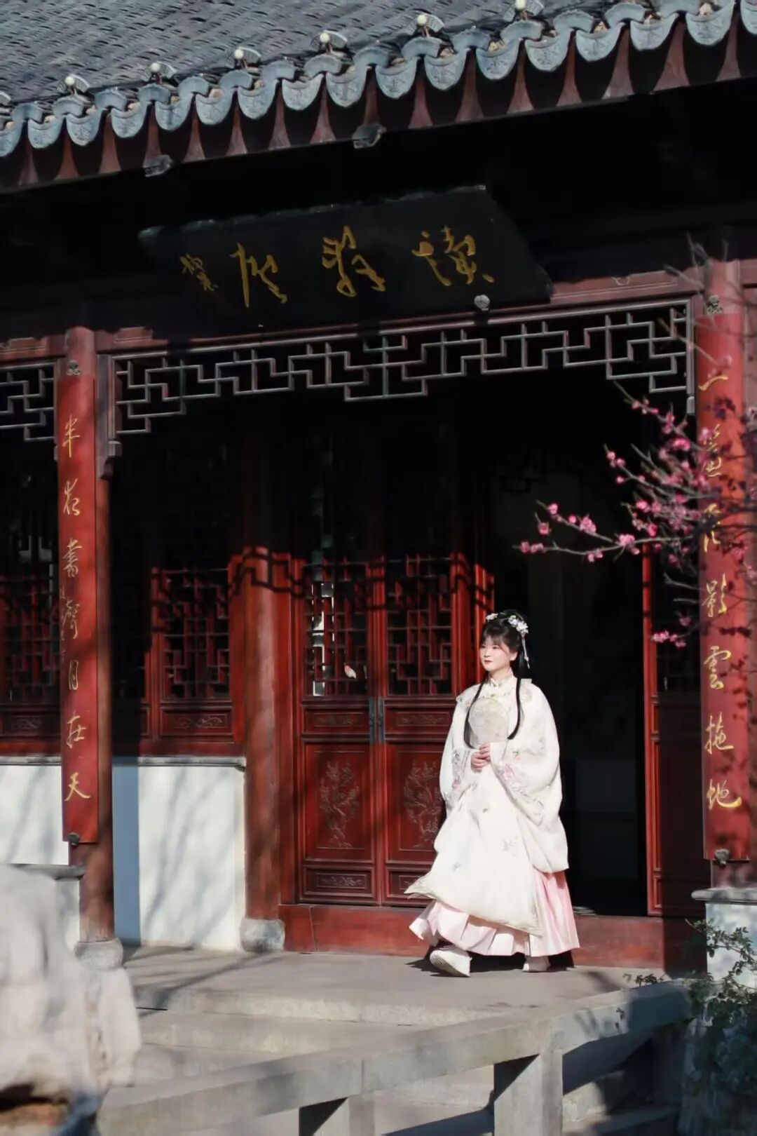 景区内汉服租赁、妆造跟拍一站式齐全,浅色系明制、宋制汉服最适配这里的儒风雅韵,拍出来的照片,既有东方风骨,又有温婉气质。