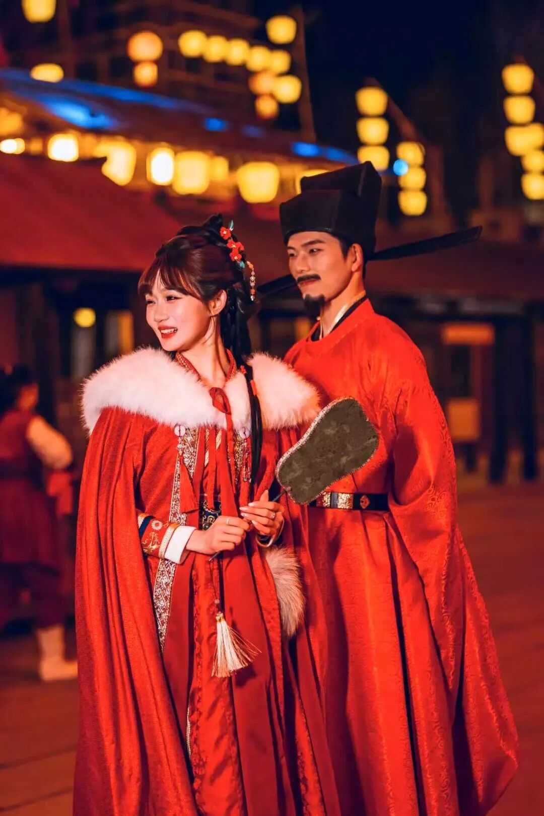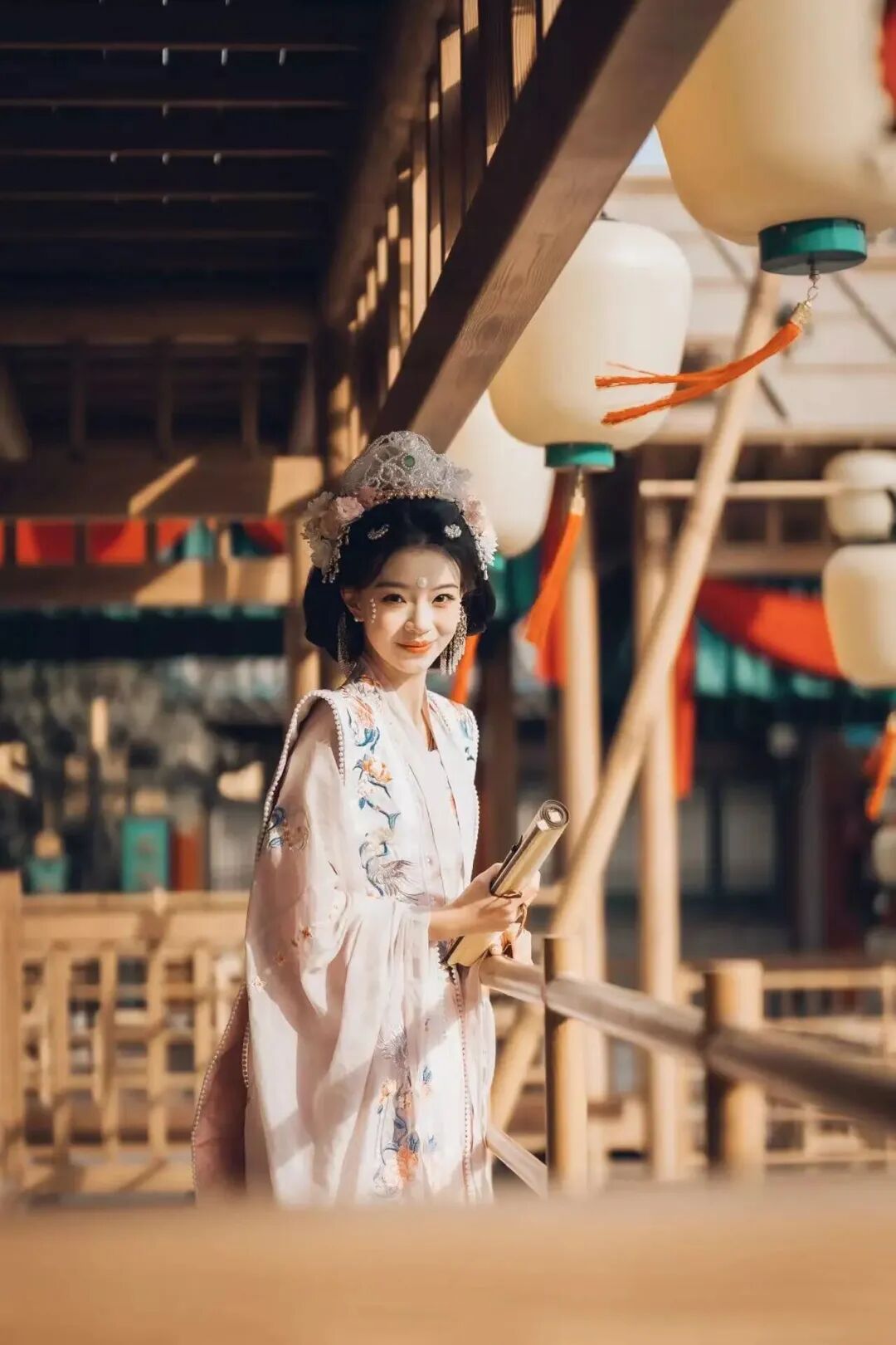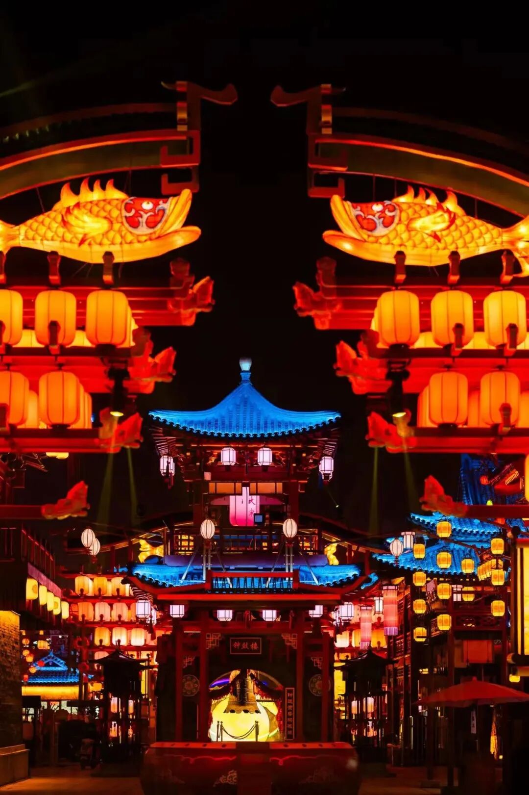而一到晚上,这里直接开启盛世模式。灯火通明,流光溢彩,城楼被灯光点亮,廊下灯笼连绵成片,仙气与华丽感同时拉满。穿一身飘逸汉服走在其中,裙摆飞扬,发丝带光,随便一拍都是仙侠剧女主既视感。