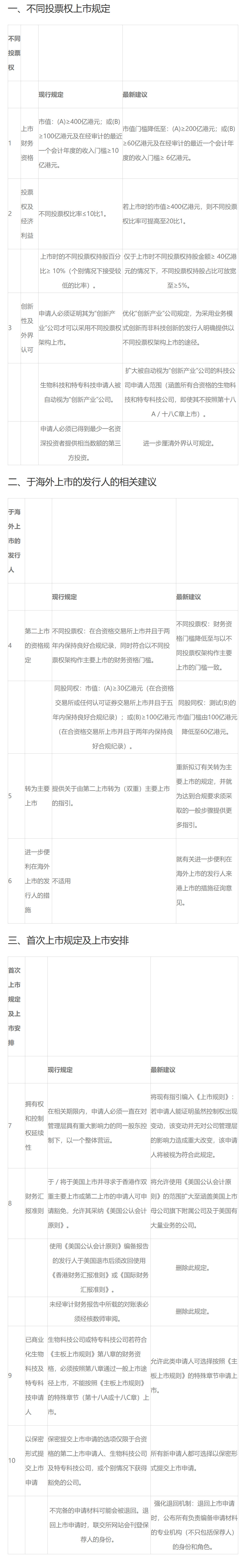 值得注意的是,本次改革对于现有的上市机制在不少层面均有较大突破,比如将不同投票权的公司财务限制下调,不同投票权比率可提高至20比1,保密形式提交上市申请的公司范围扩大到所有申请人,退回上市申请时,公布所有负责编备申请材料的专业机构(不只包括保荐人)的身份和角色等等。