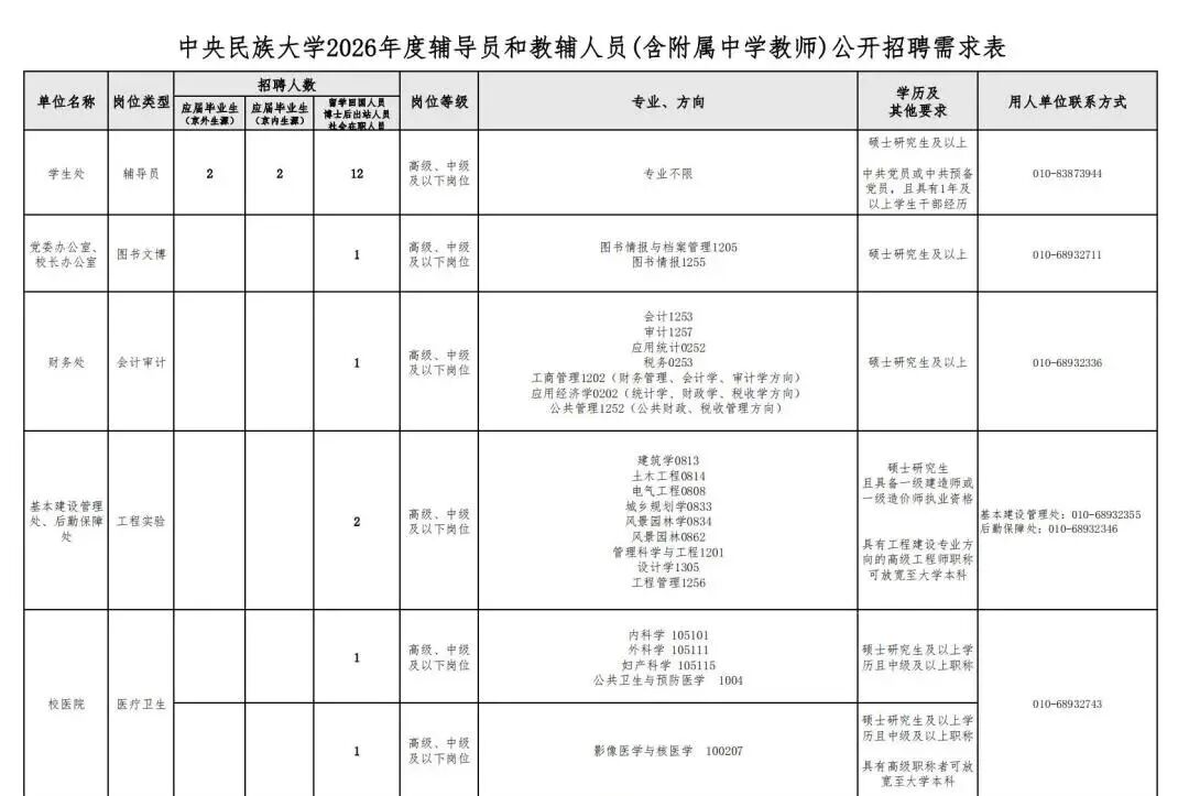 为打造素质精良、结构合理的人才队伍,建设人才聚集、创新开放的学术高地,我们诚邀广大优秀青年人才加盟,共创中央民族大学美好未来!