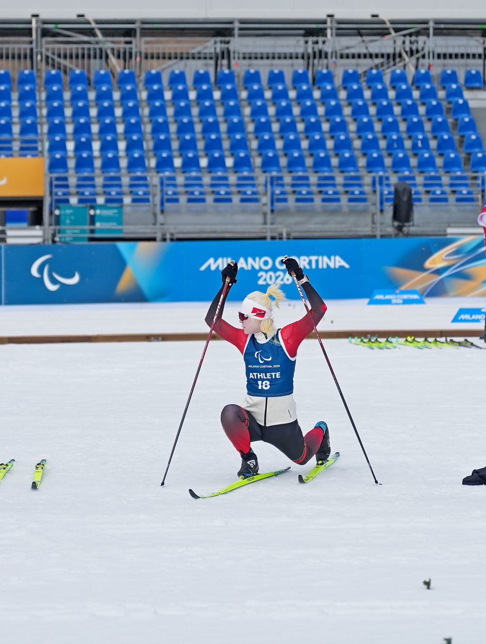 3月11日,中国选手单怡霖在米兰-科尔蒂纳冬残奥会越野滑雪女子中距离(坐姿)比赛中获得第七名。新华社记者 侯昭康 摄