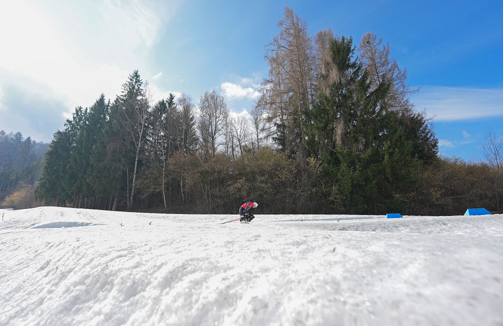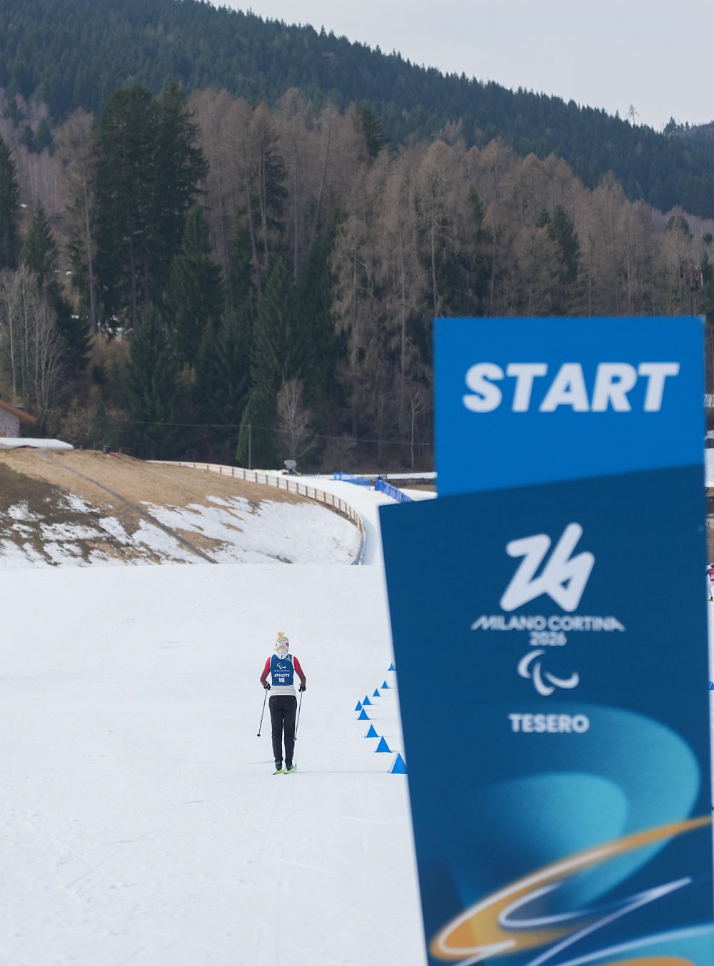 当地时间3月9日,中国残奥运动员杨倩茹在泰塞罗越野滑雪中心进行训练。 新华社记者 侯昭康 摄